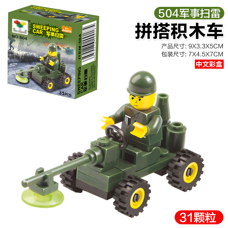 【彩盒-滑行款】504军事扫雷款-积木车(31颗粒)26g