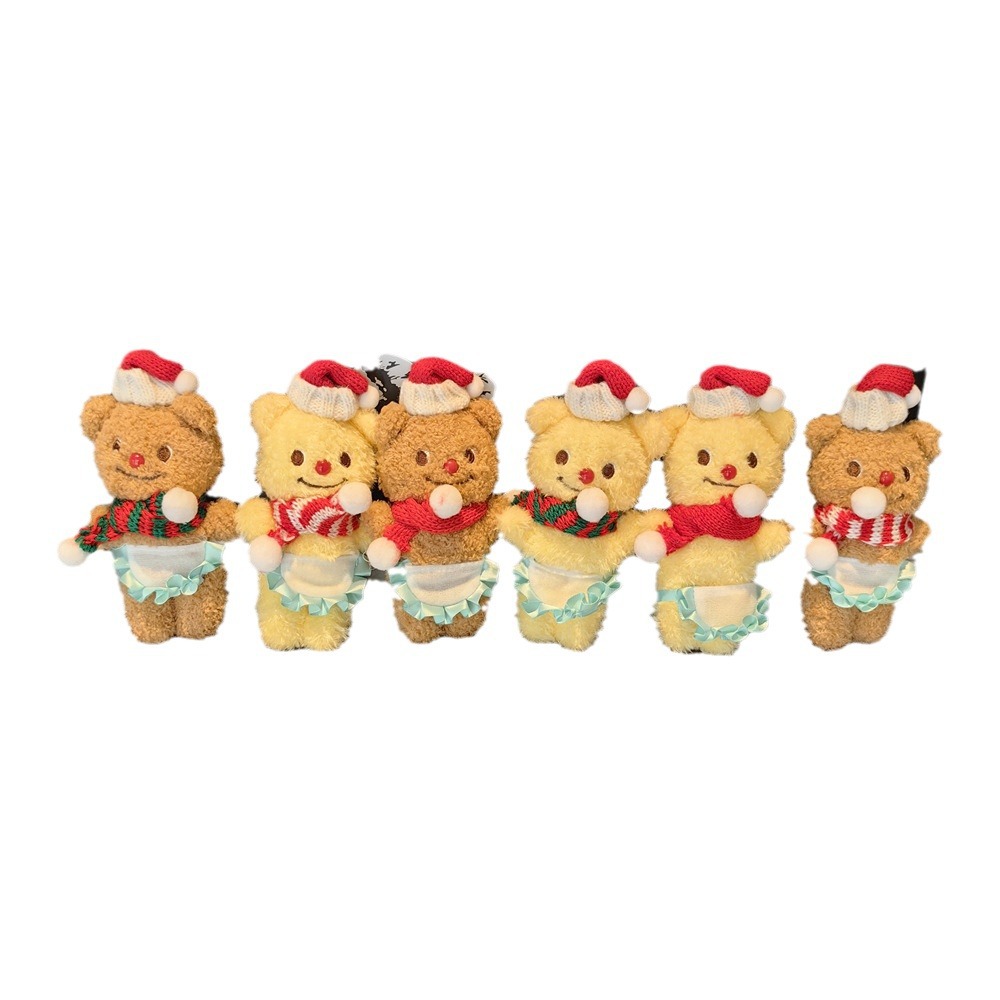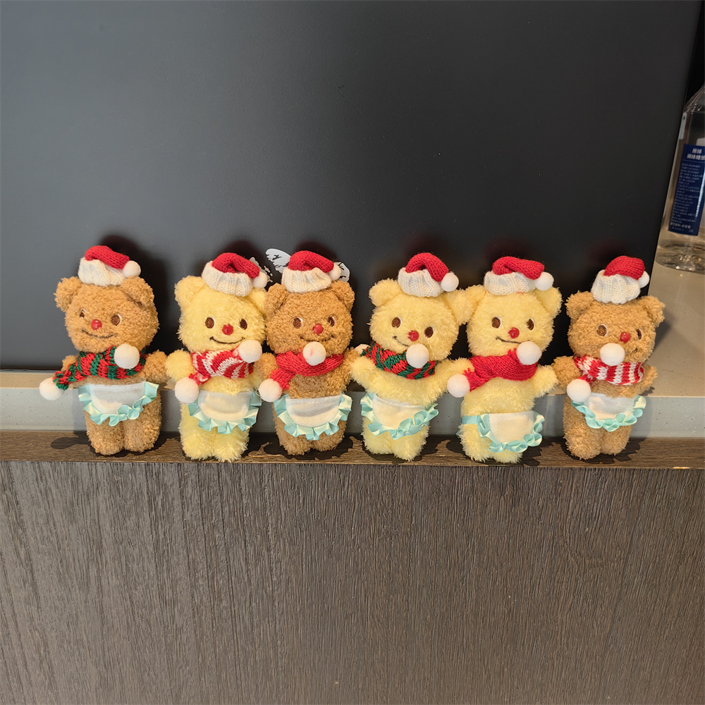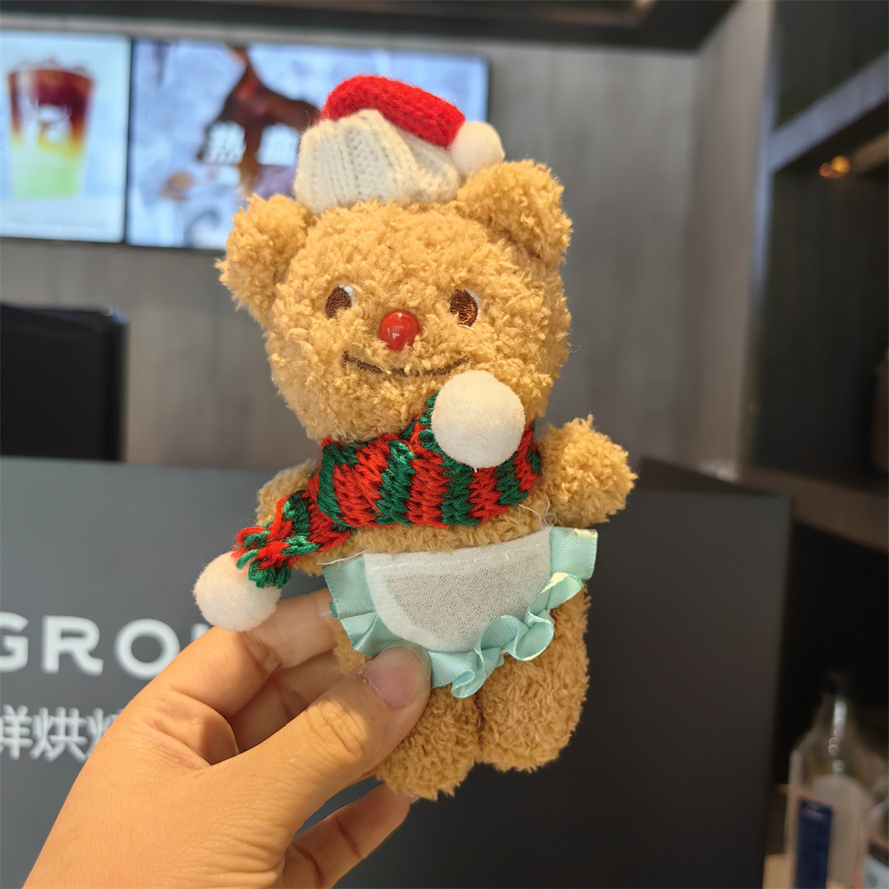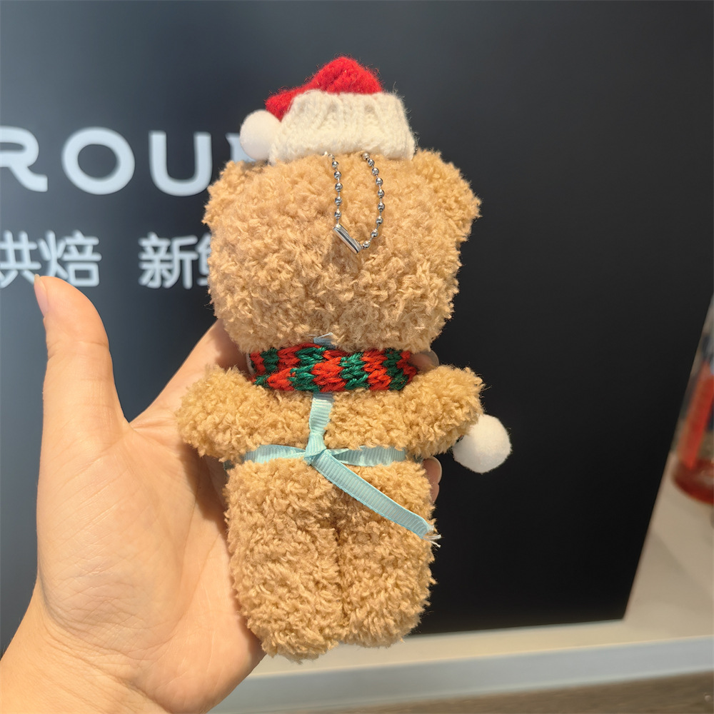 red and white scarf brown bear pendant