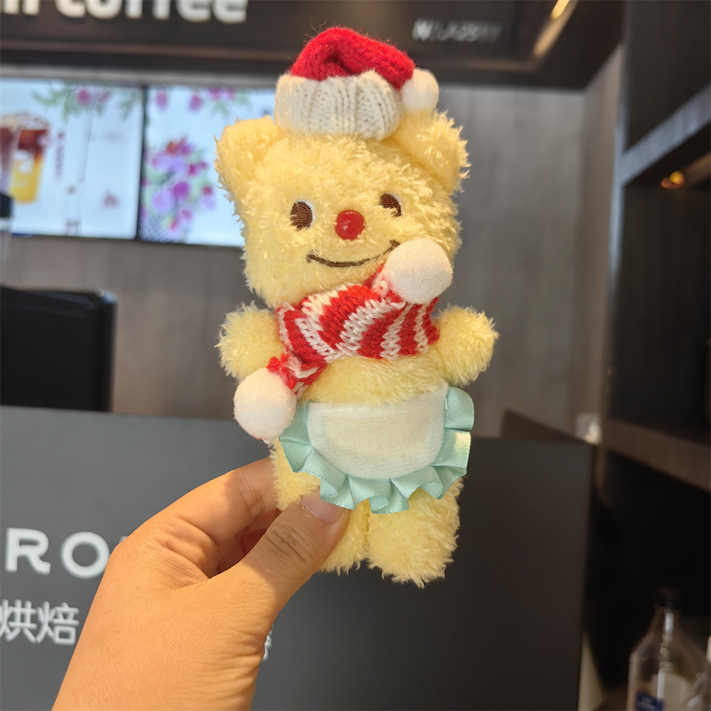 red and green scarf yellow bear pendant