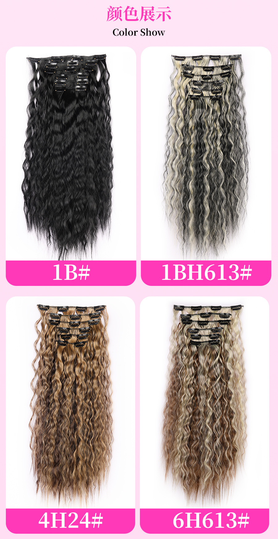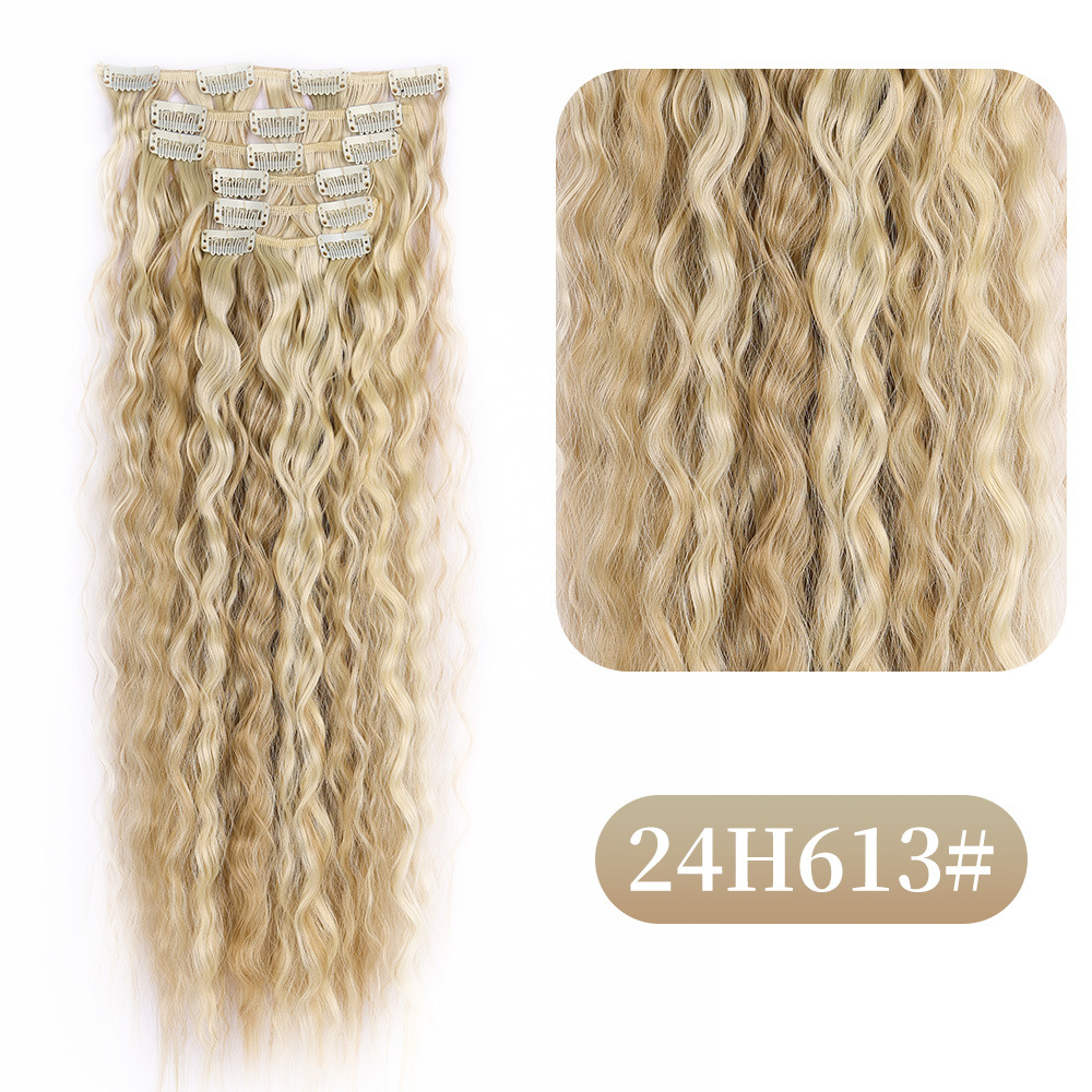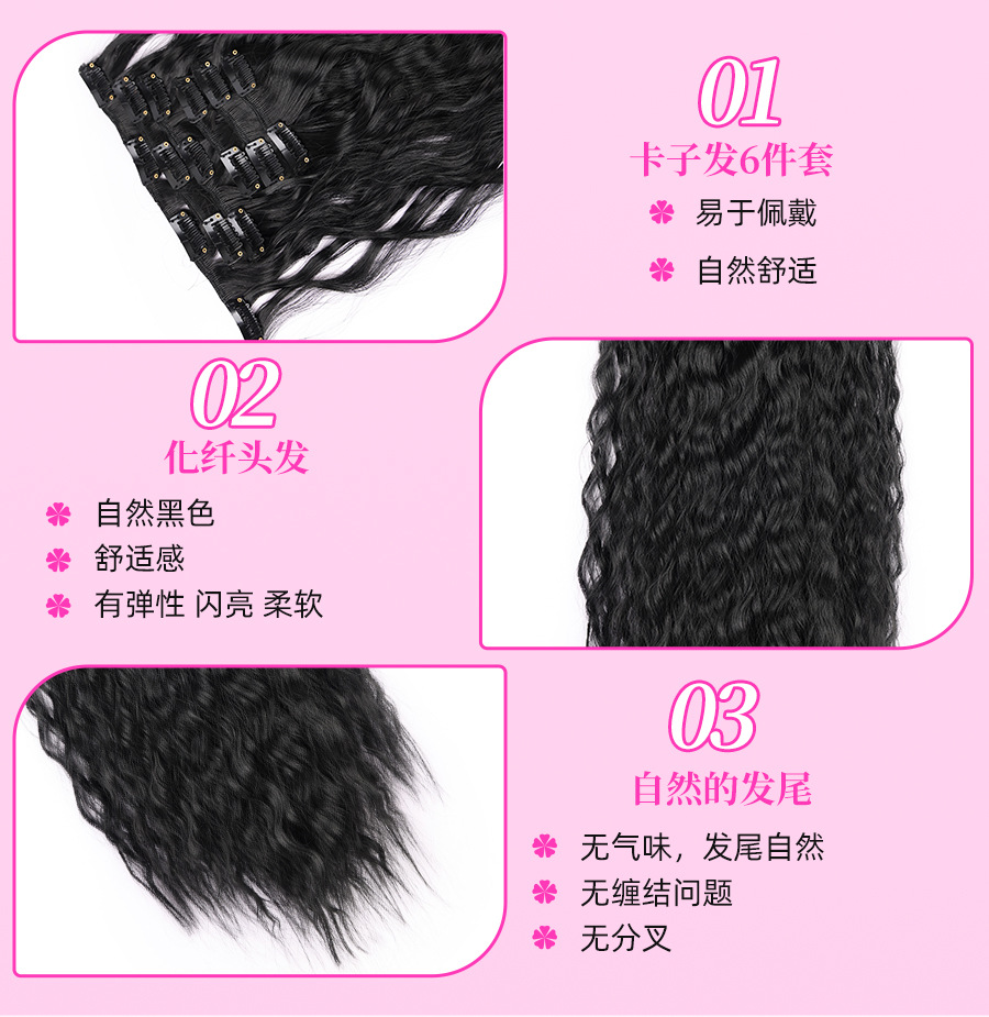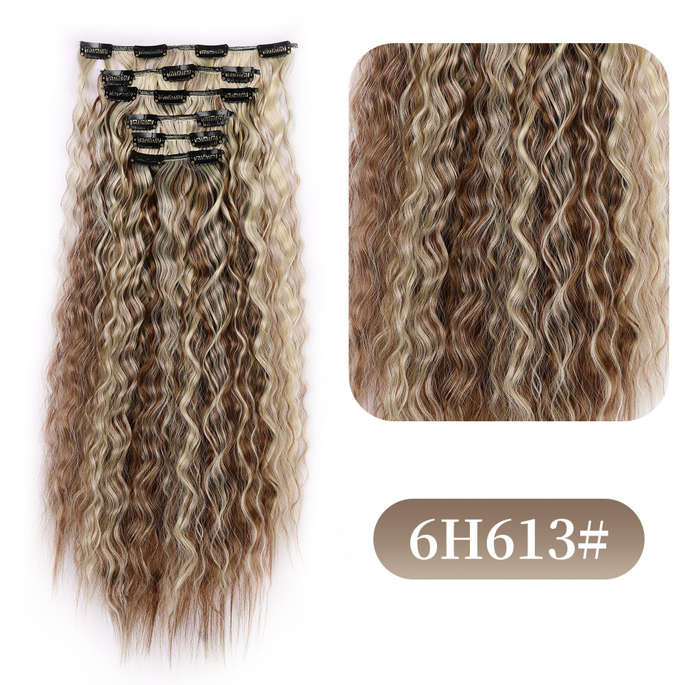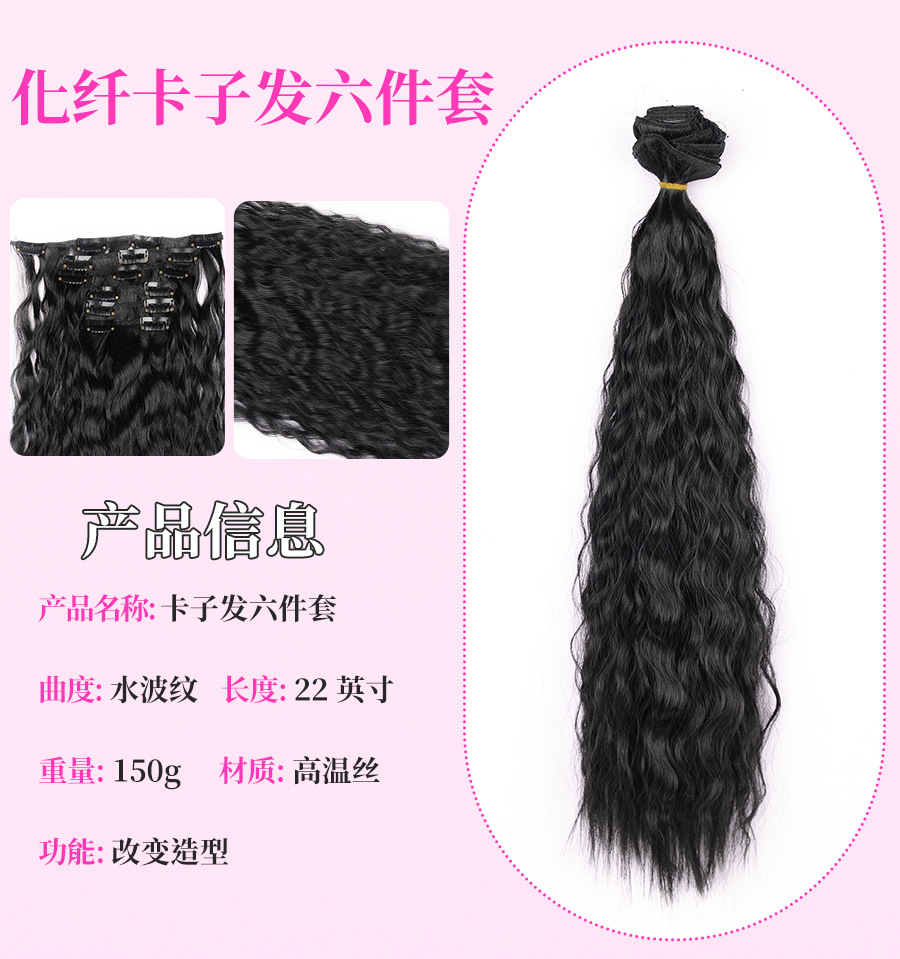 Foreign Trade Corn Curler Hair Extension Wig 6-Piece Set Hairpiece Clip 16 Cards Curly Hair Wigs Hairpiece Clip Sets Female Wig Set