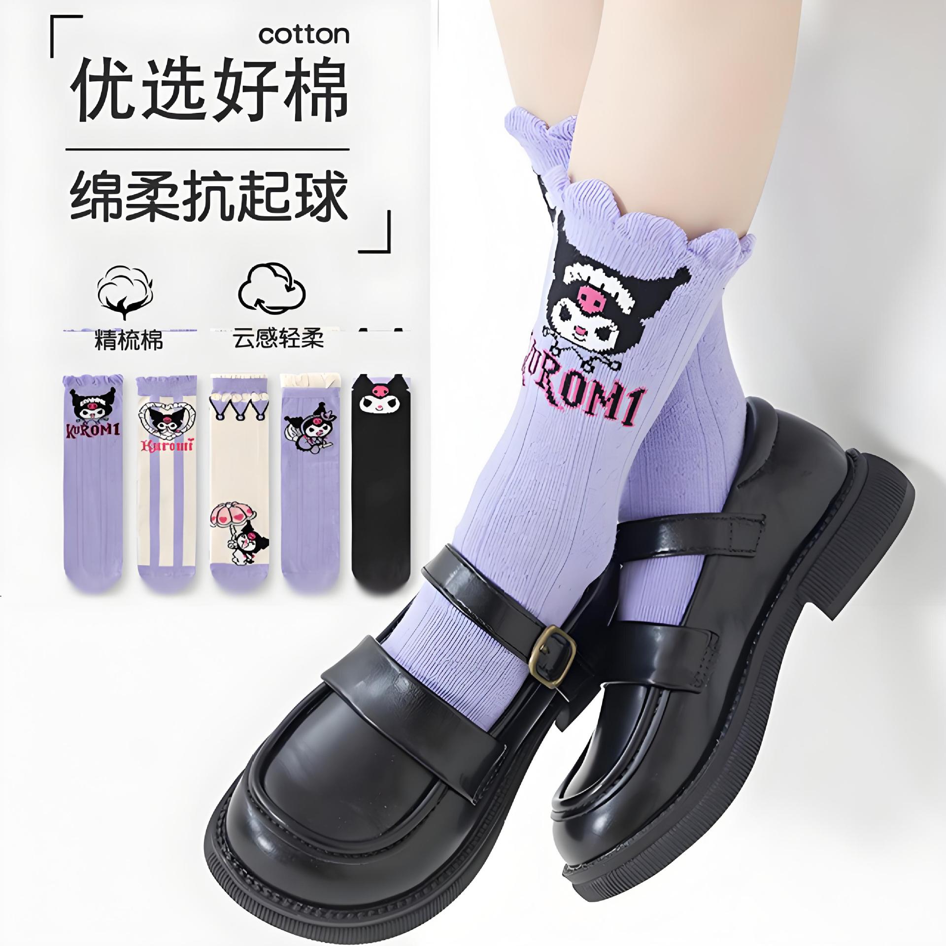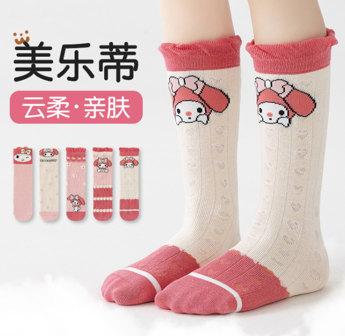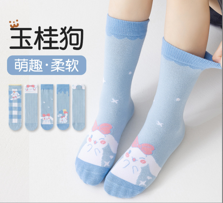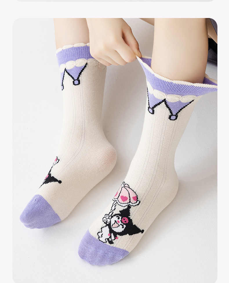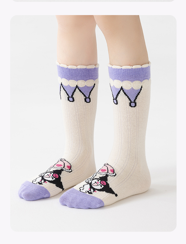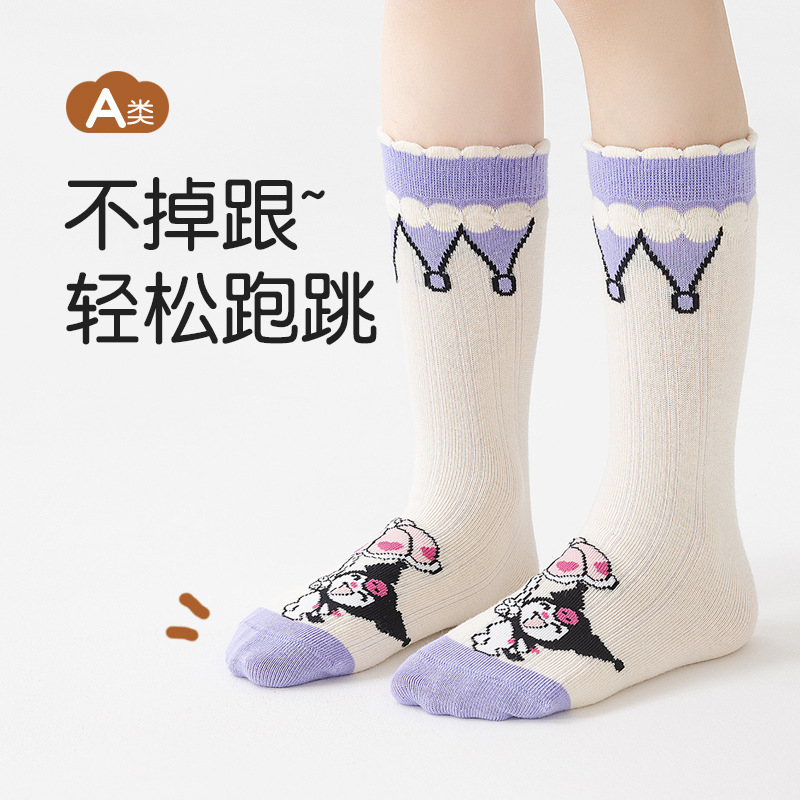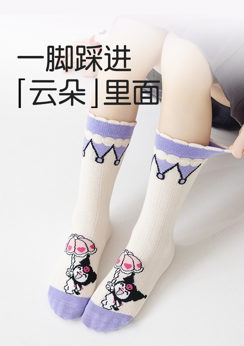 2024 new autumn and winter cartoon girl calf socks flat sock cute cartoon children's trendy straight cotton sock