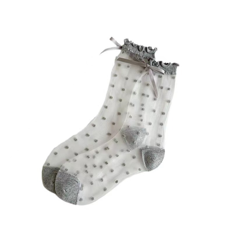 polka dot wooden ear crystasilk sock women's summer thin breathable japanese jk bow ballet style transparent tube socks