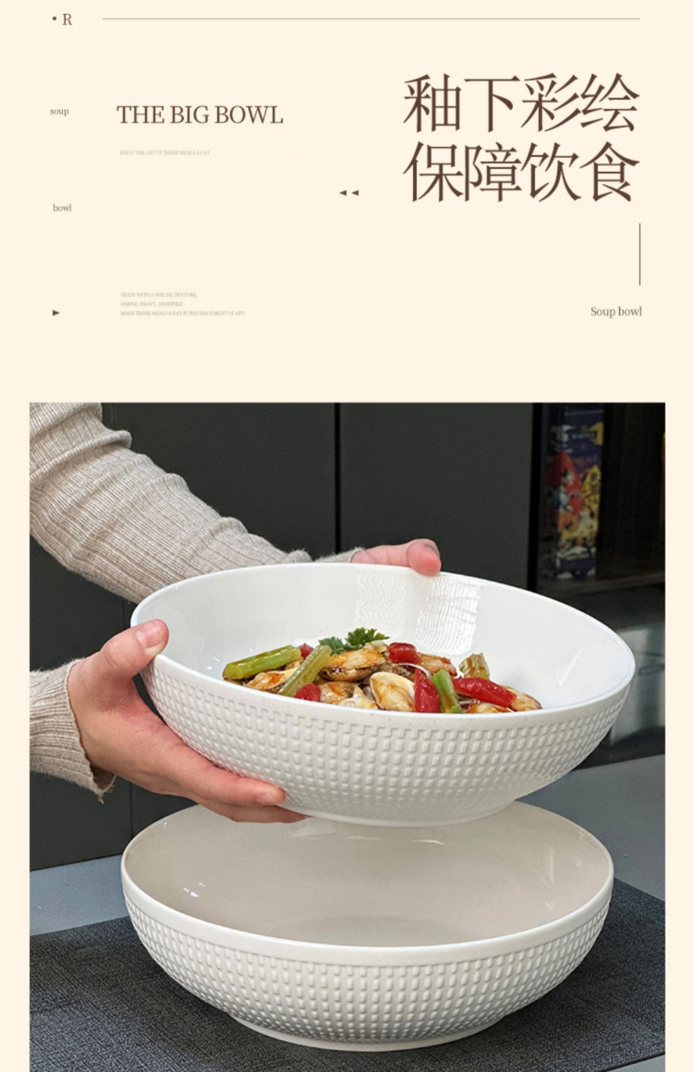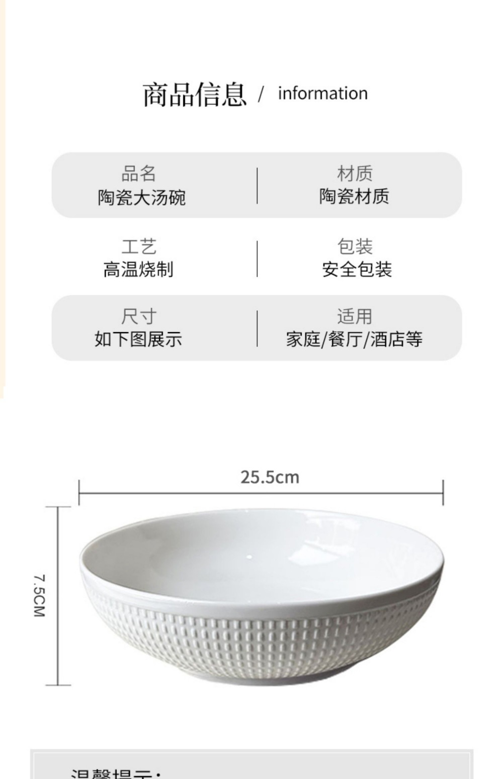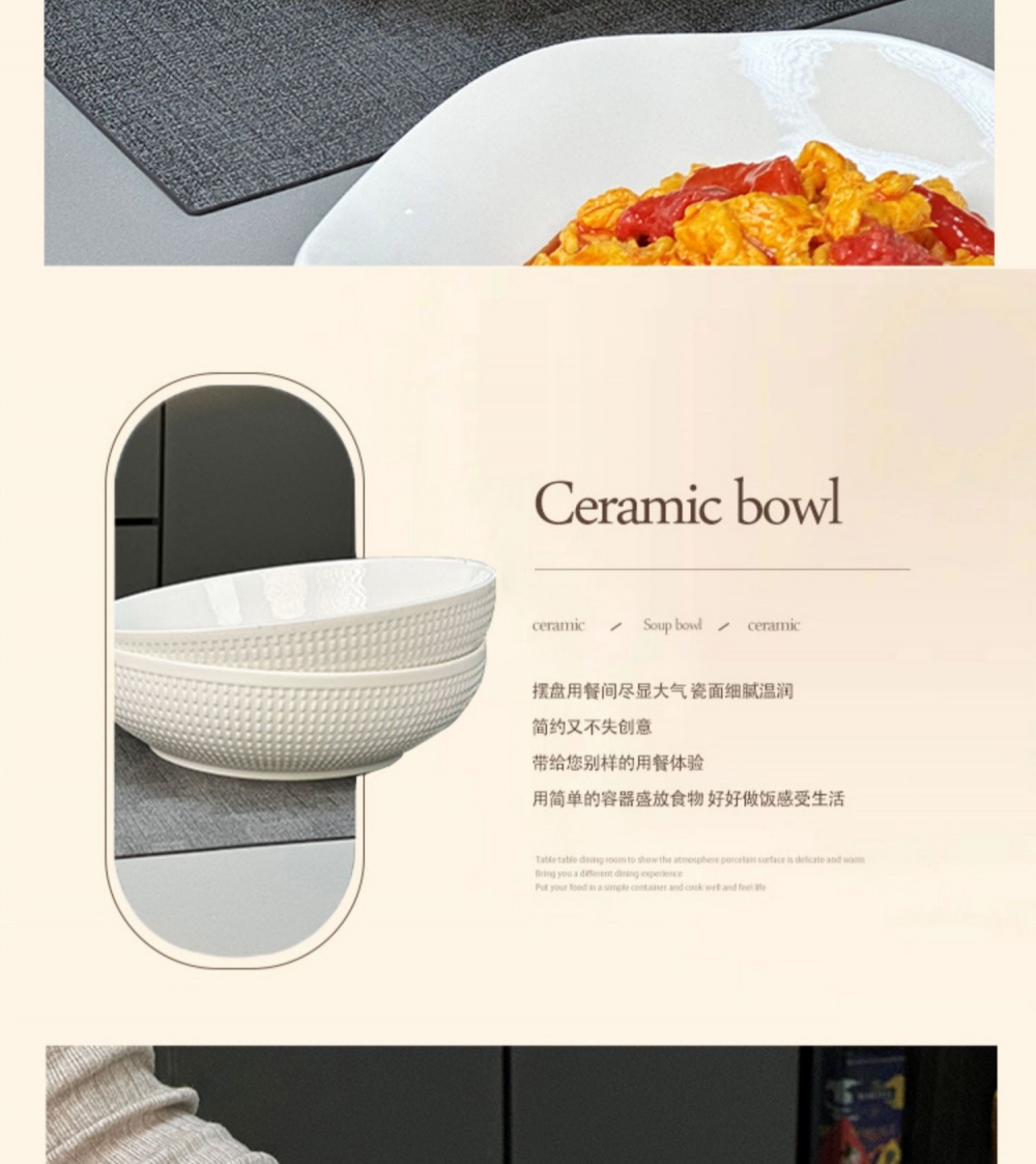 10-inch pure white large bowl