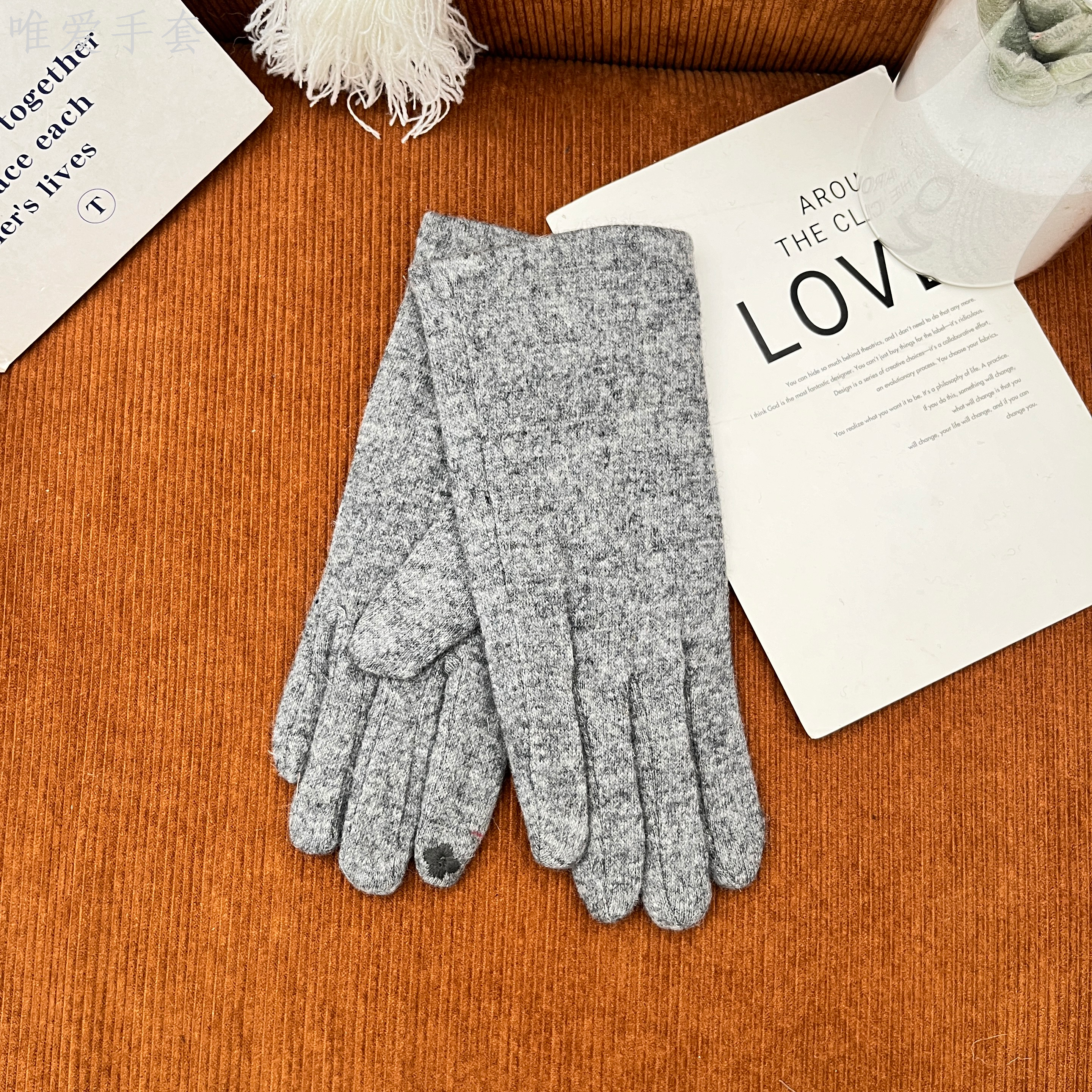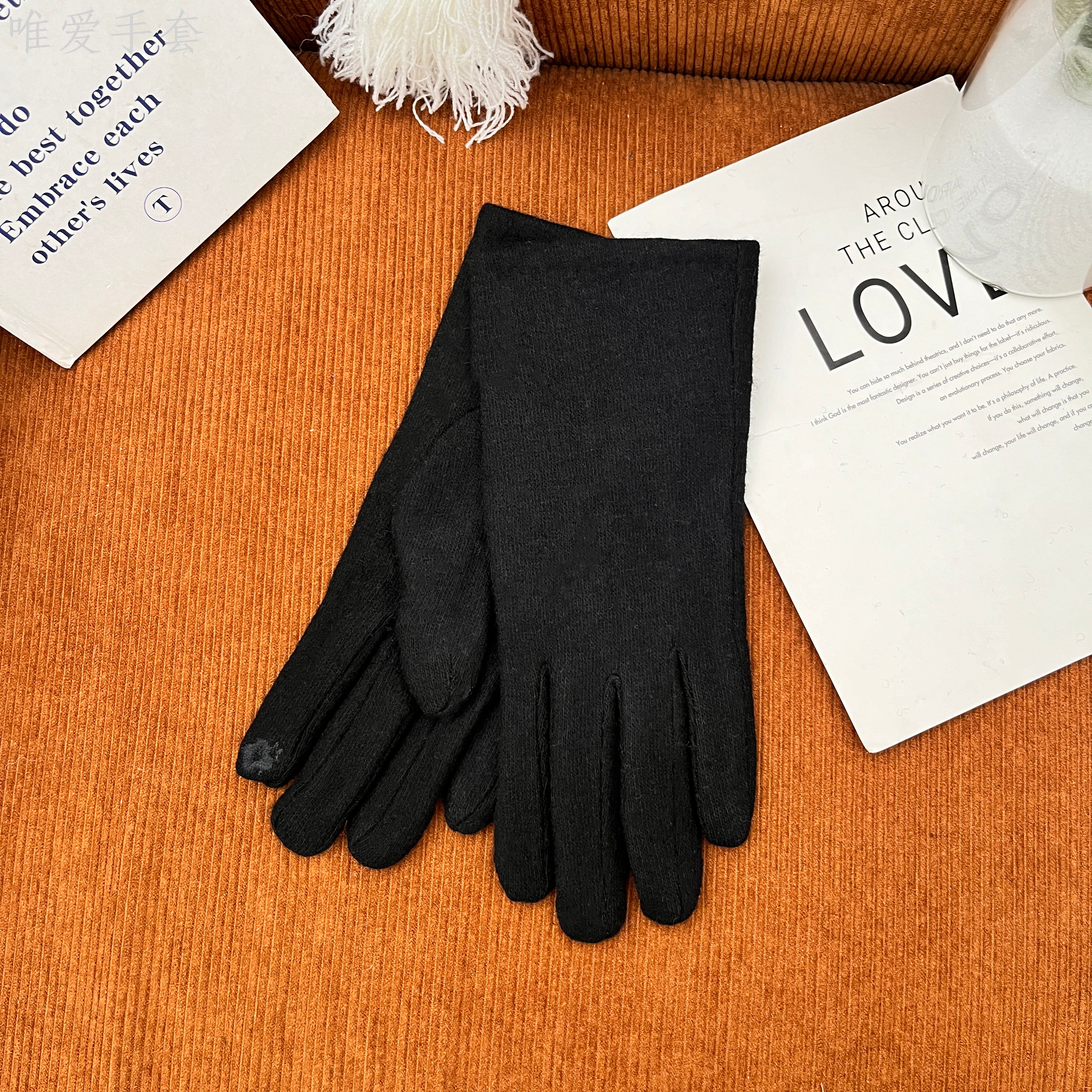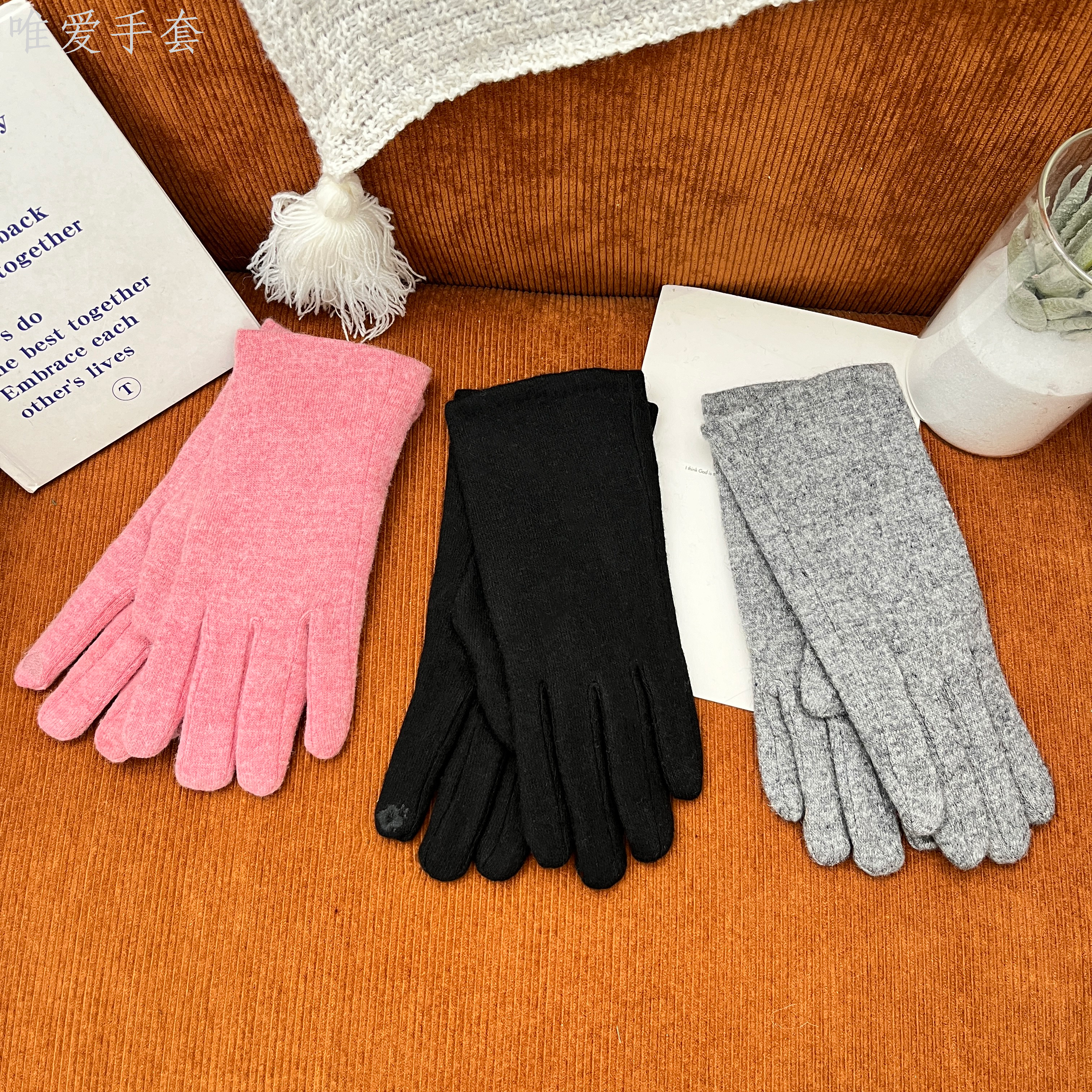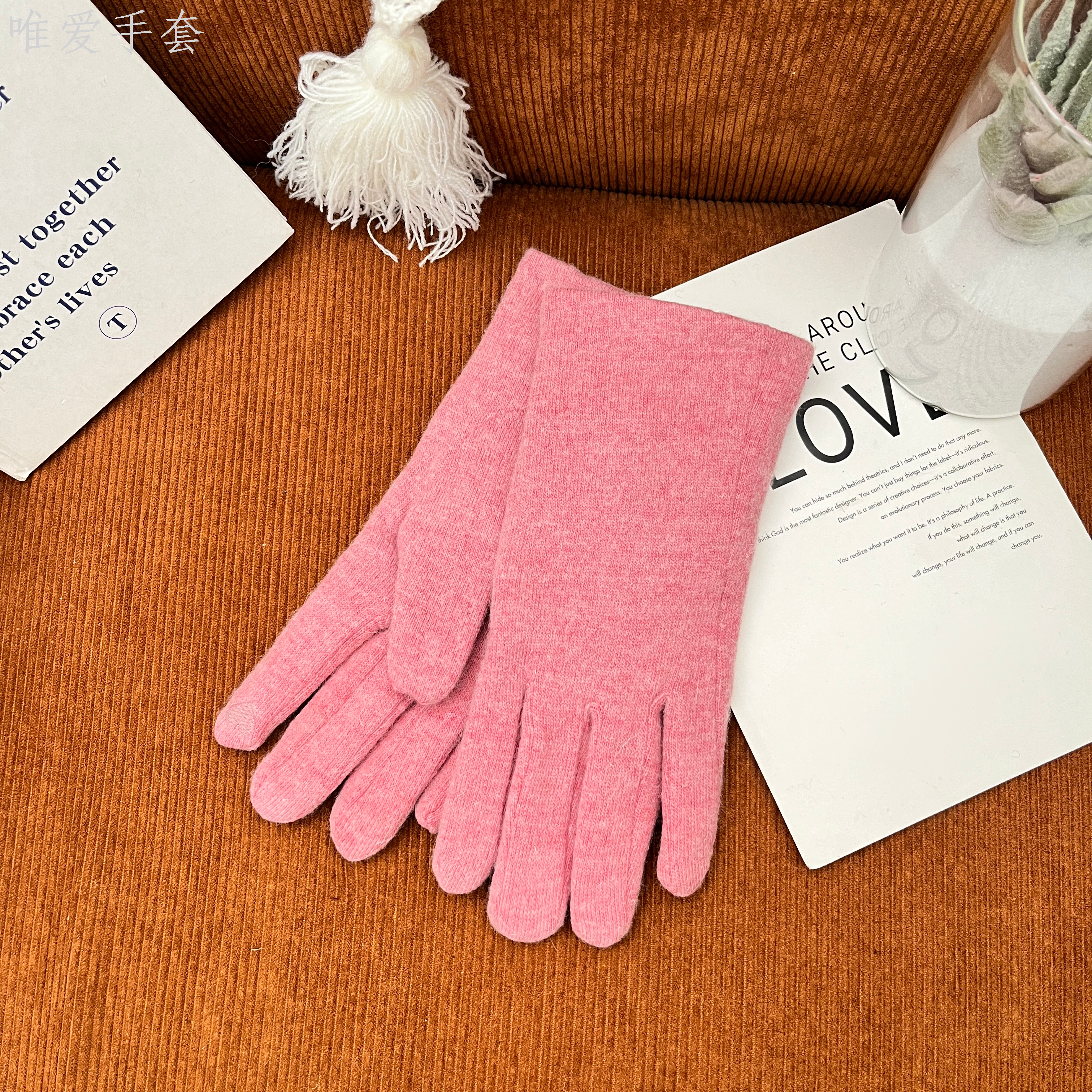 light board five-finger cashmere with lining fleece-lined thickened touch screen simple women's gloves