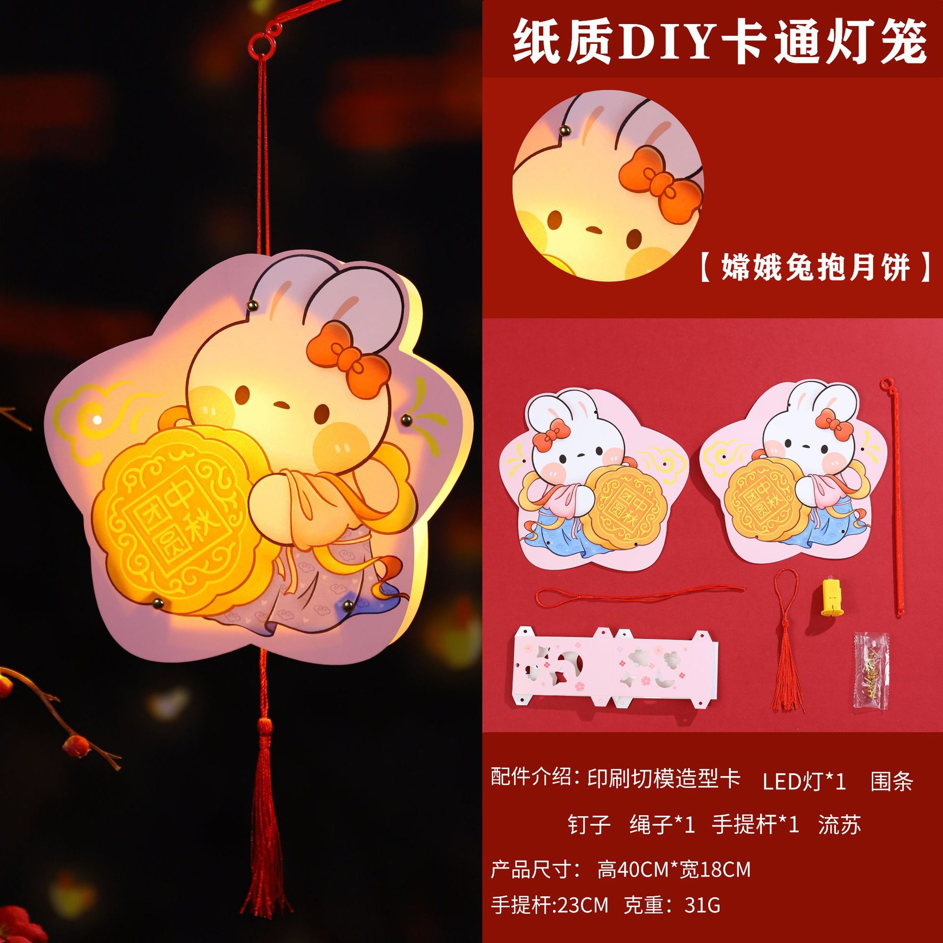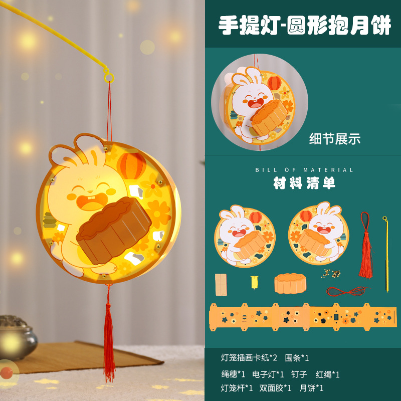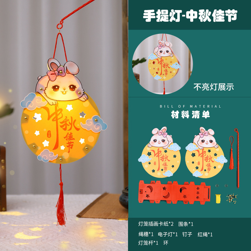 paper diy rabbit lantern-w [rabbit holding moon cake happy mid-autumn festival]]