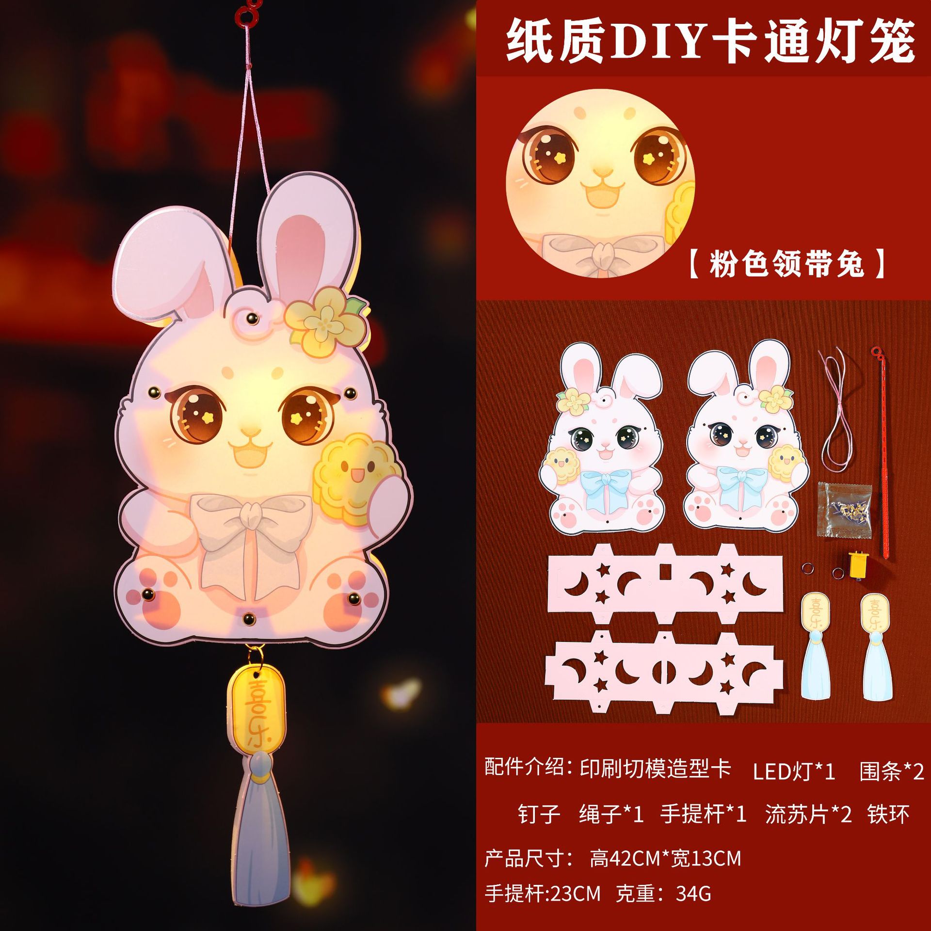 paper diy cartoon lantern-h [pink tie rabbit]]