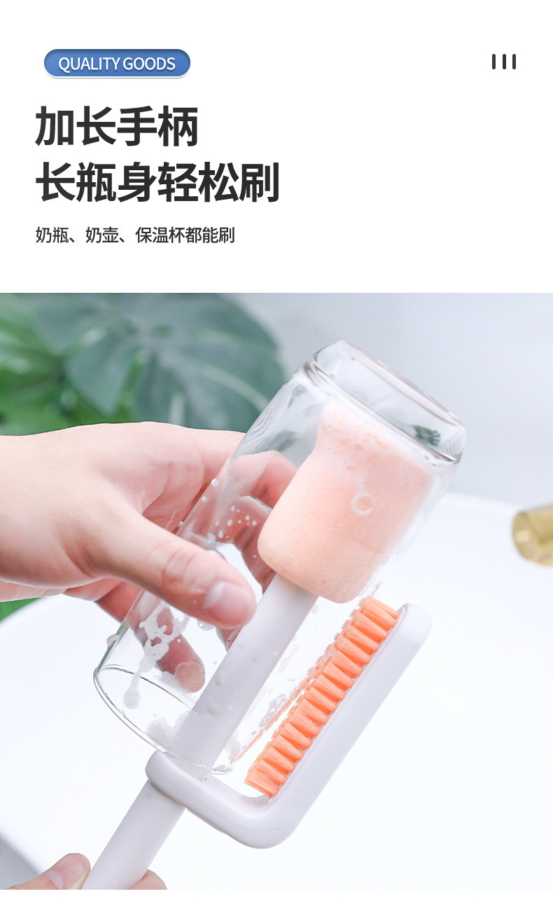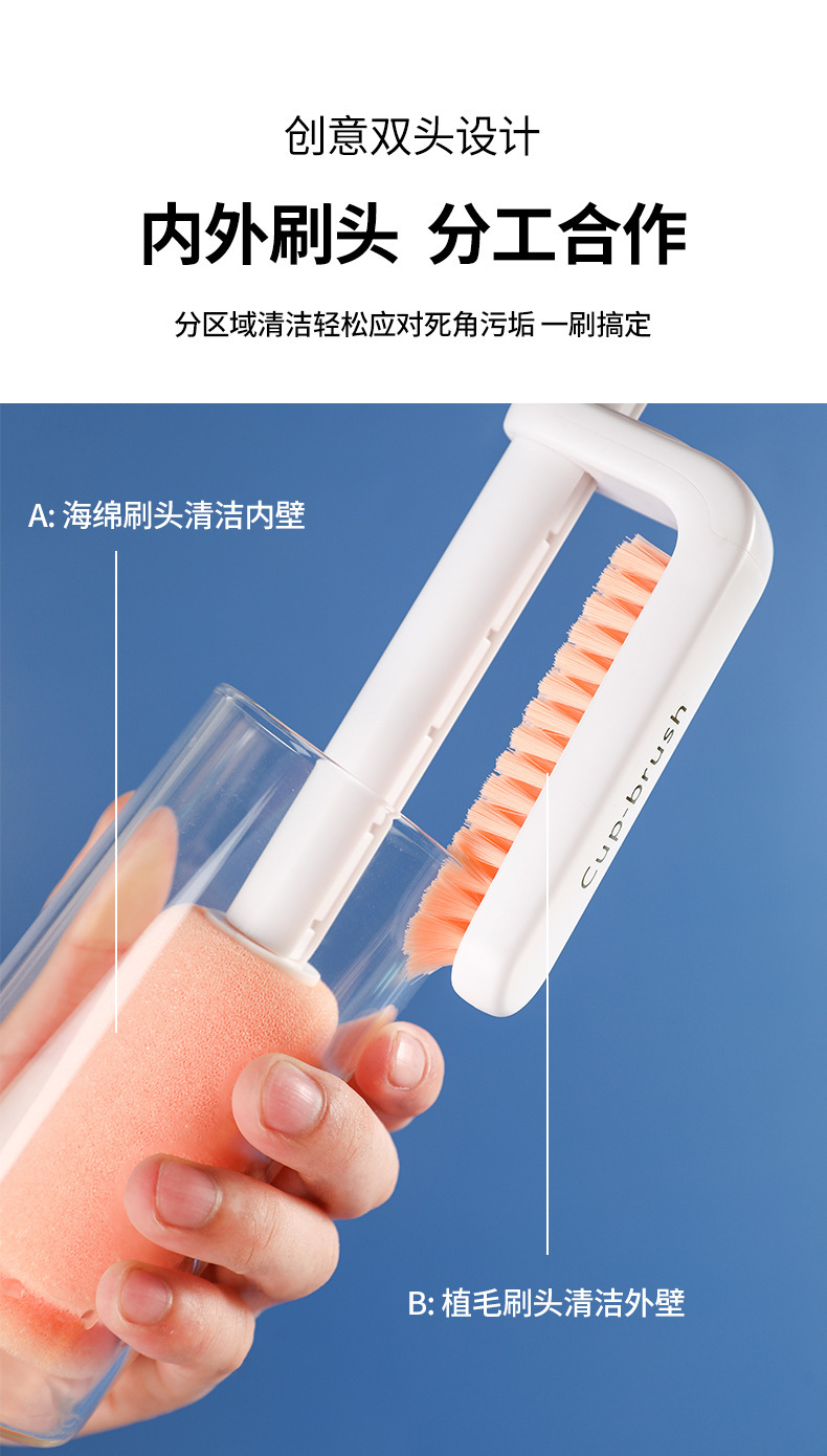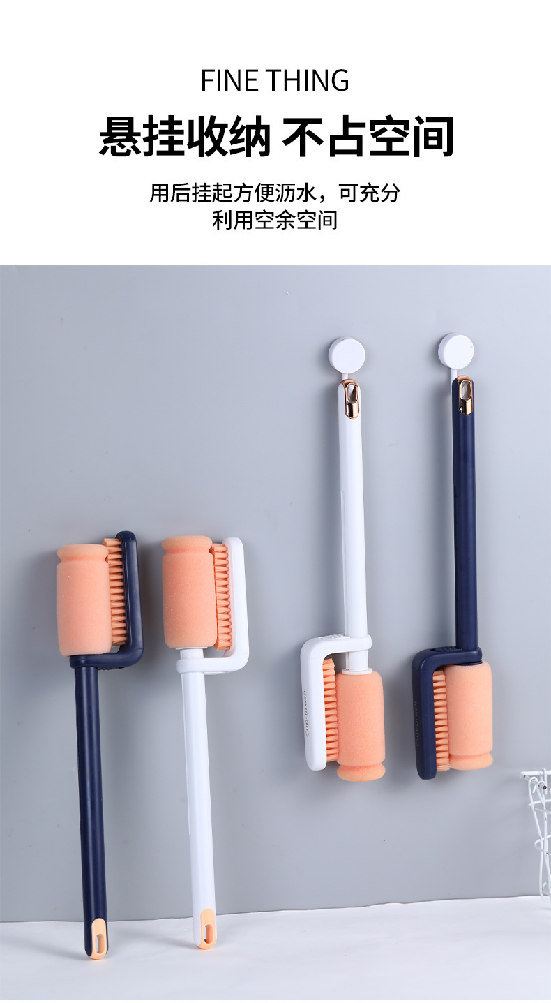 multifunctional three-in-one rotating double-headed telescopic design plastic sponge cup brush gap cleaning long handle cleaning cup
