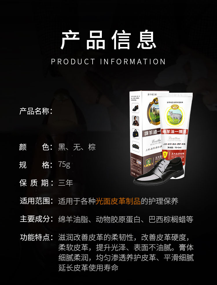 black 75g lanolin polish