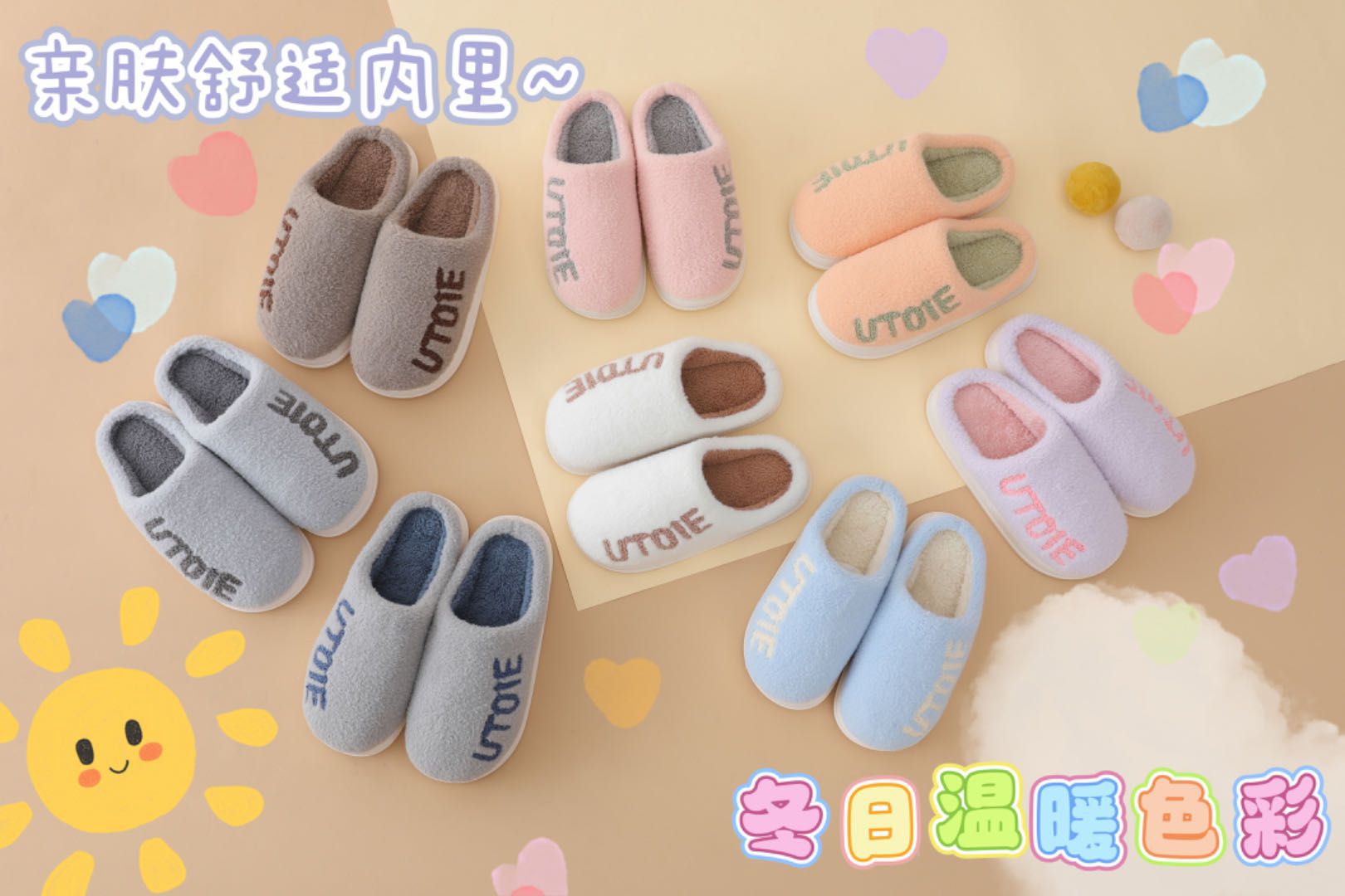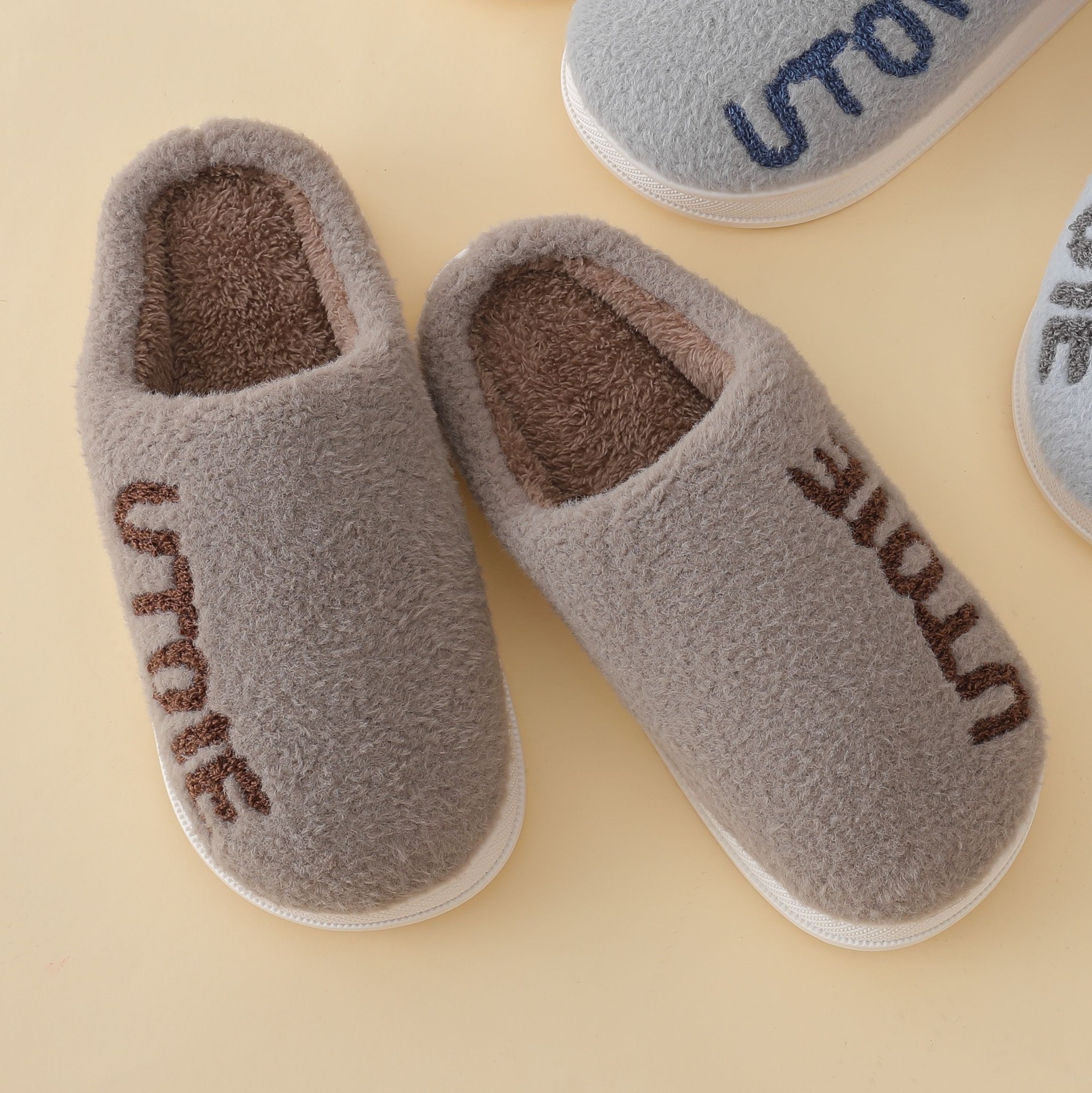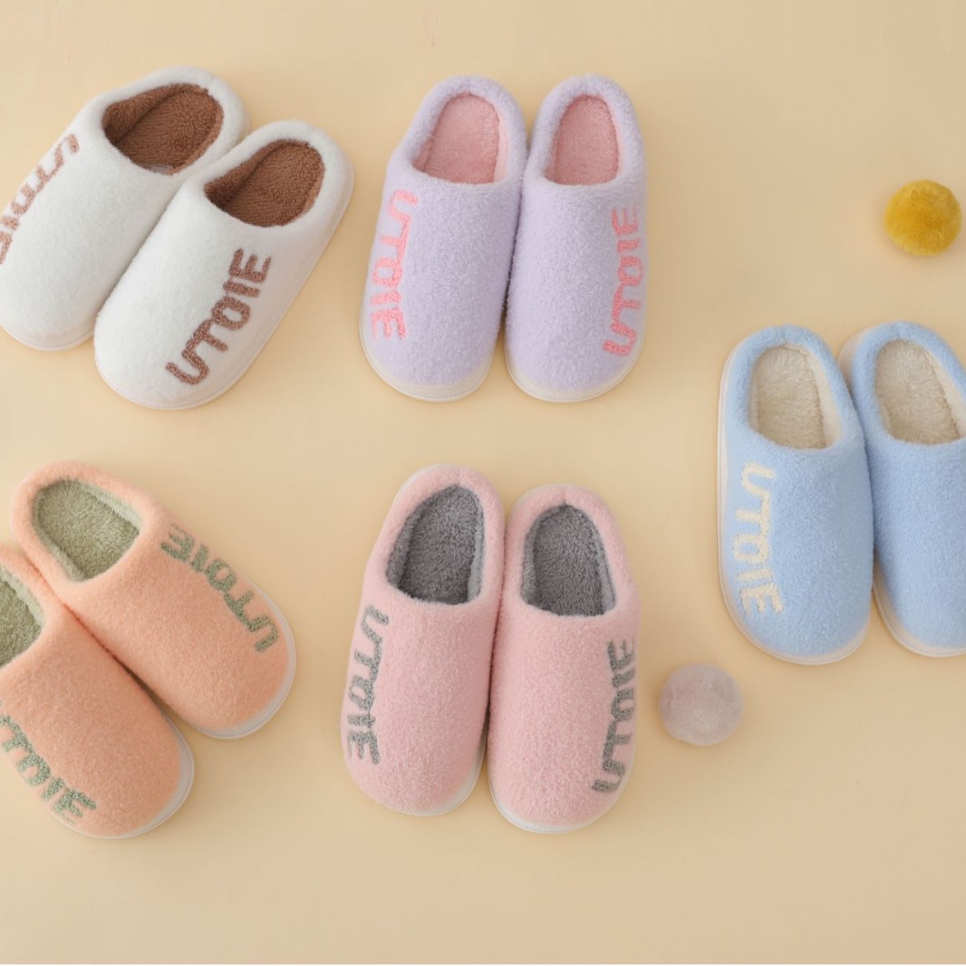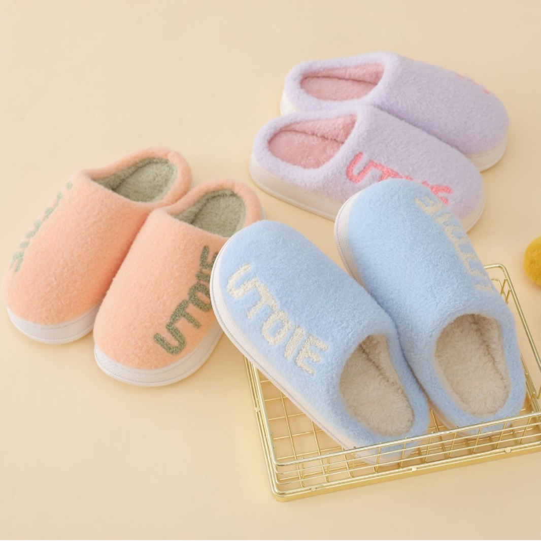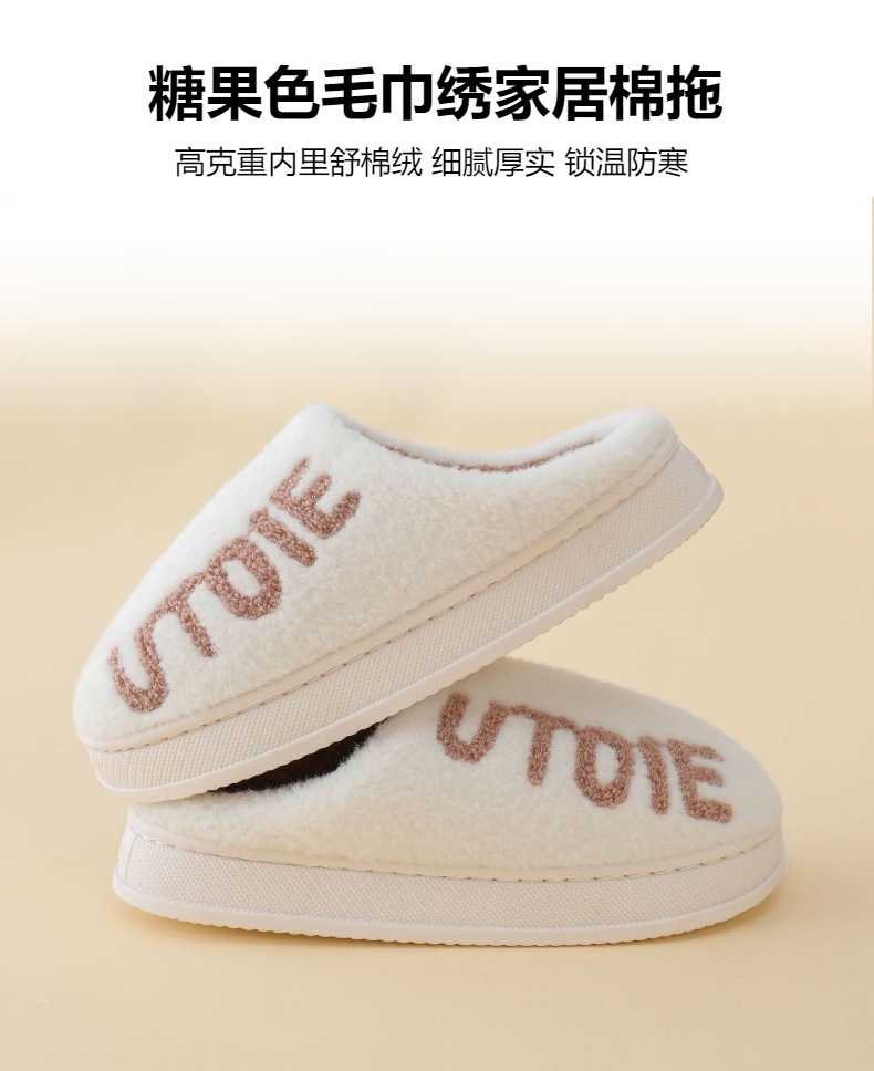 Minimalist Candy Color Towel Embroidered Home Cotton Slippers