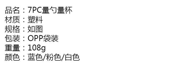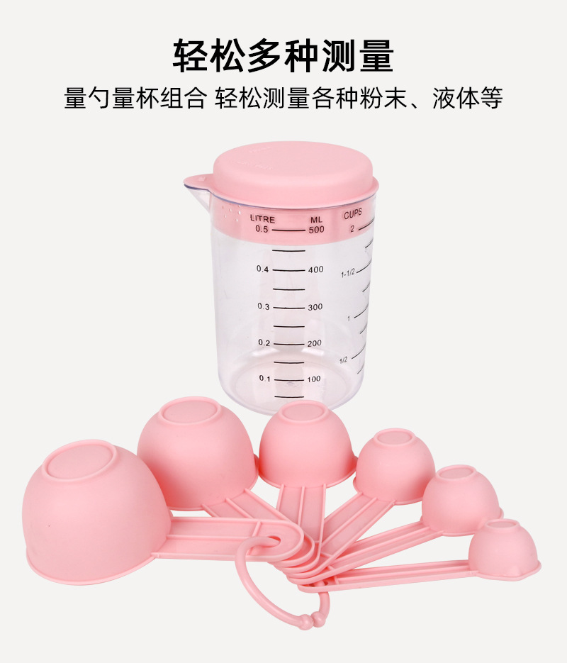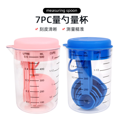 量勺量杯套装塑料带刻度500ml烘焙工具7PC组合厨房量面粉勺子 |