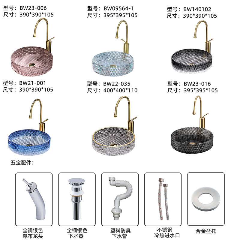 Sink with stand, glass sink, tempered glass sink, vanity, washbasin, washstand, washbasin, countertop sink, basin, vanity, washbasin, integrated countertop sink, bathroom sink, Boweiya