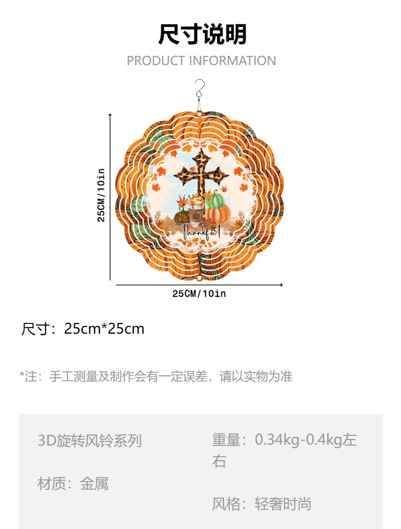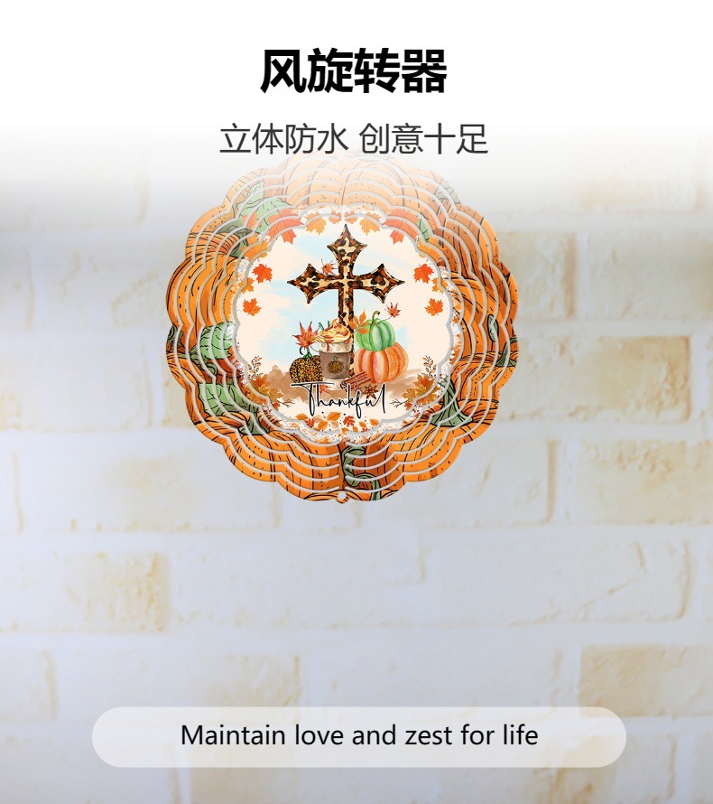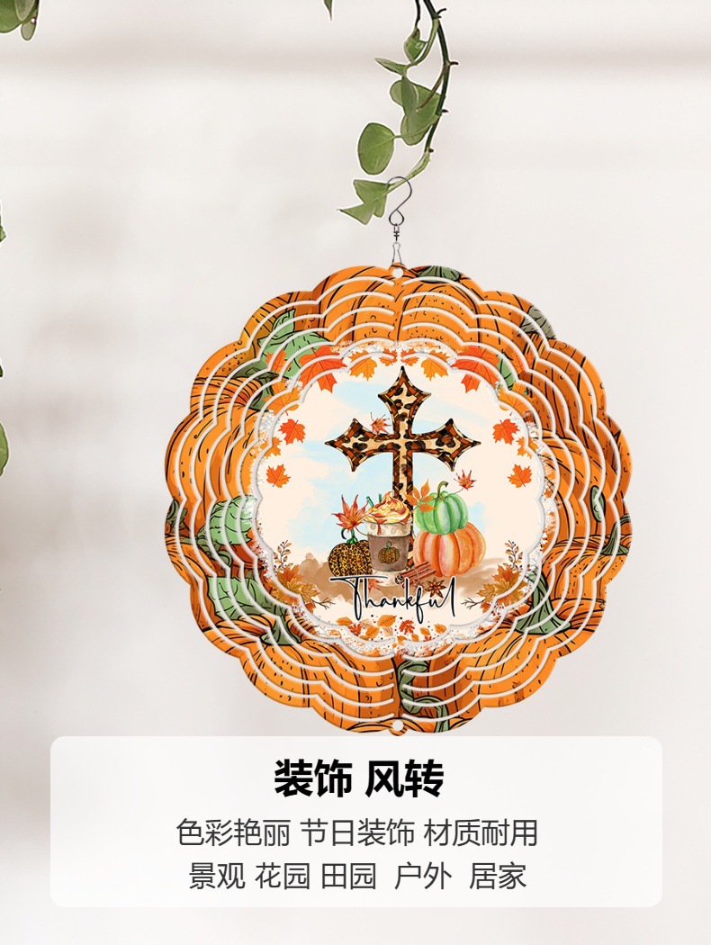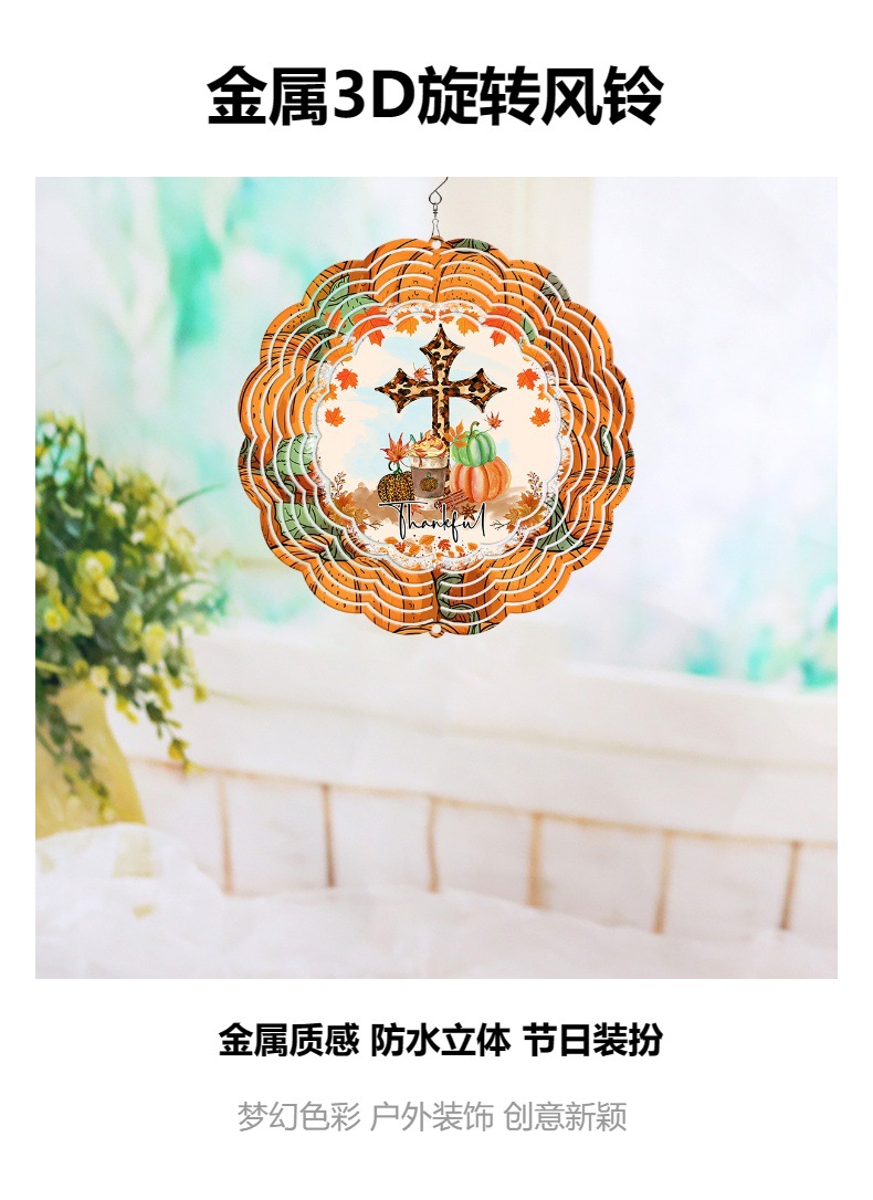 new pumpkin thank you letter cross 3d rotating wind chimes outdoor garden home wind turn iron decorative pendant 中文版