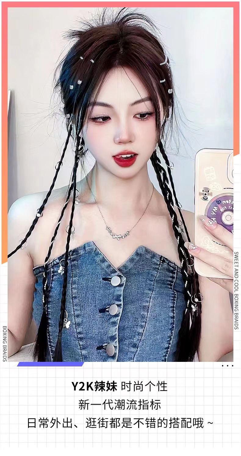 sweet cool buckle wig braid barrettes y2g hot girl simulation braided twist braid clip dreadlocks boxing braid hair accessories