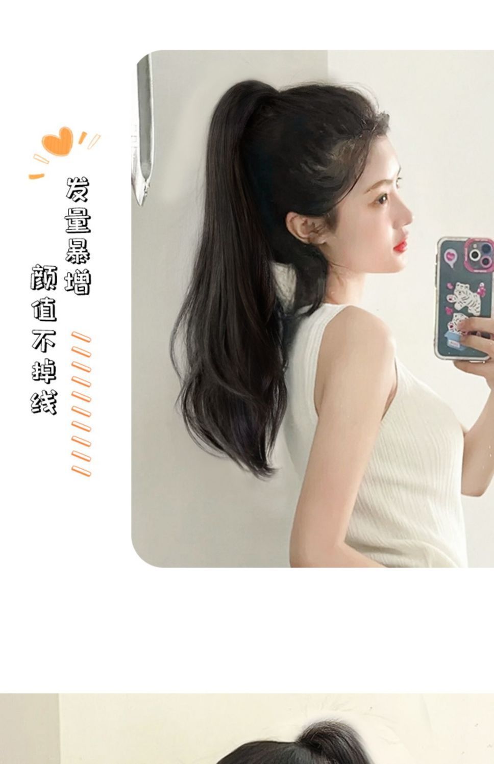 High Ponytail Micro Curly Wig Female Medium Long Curly Hair Natural Internet Celebrity Grip Tied Braid Wig Female Long Hair Perm