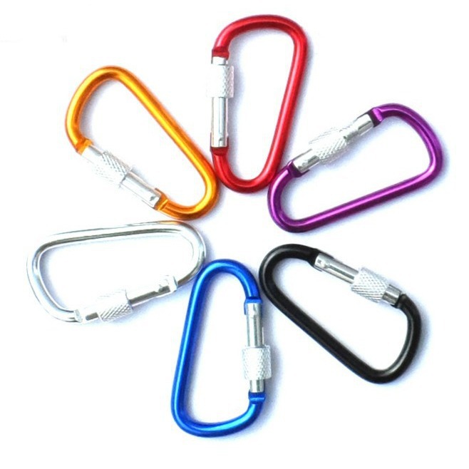 factory supply high quality no. 6 d-shaped aluminum alloy with lock climbing button carabiner outdoor hanging buckle