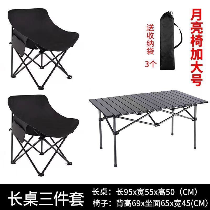 ❣long table three-piece set [black long table + black moon chair * 2]]❣