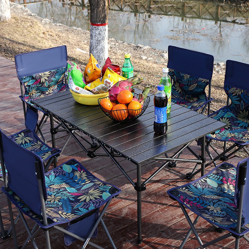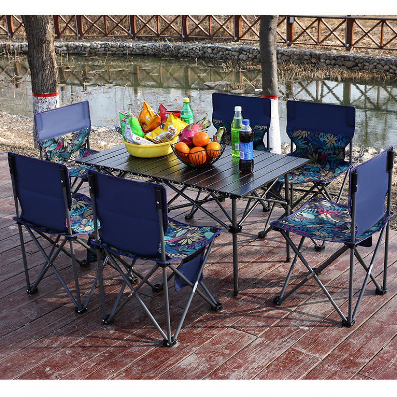◆★★☆ 1.2 m wood grain table +6 chairs + storage bag♥♦