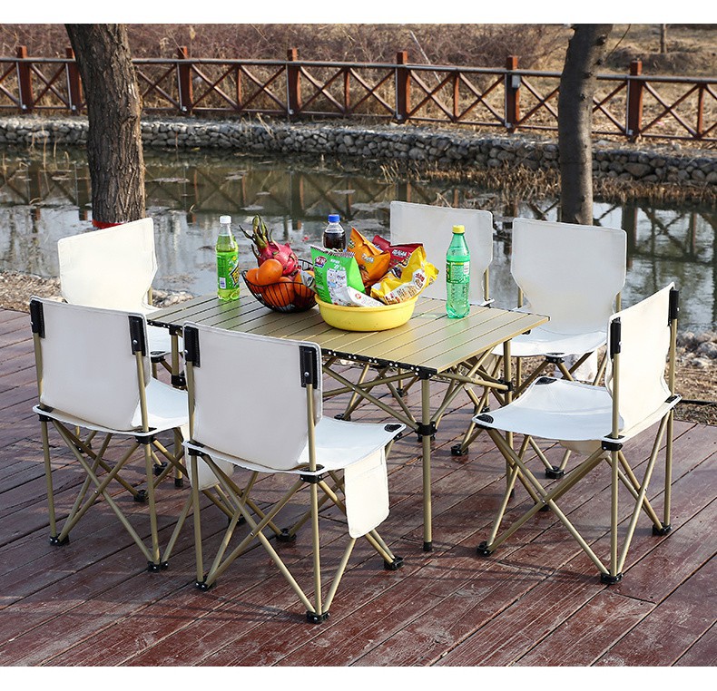 ◆★★☆ 1.2 beige table +6 chairs + storage bag♥♦