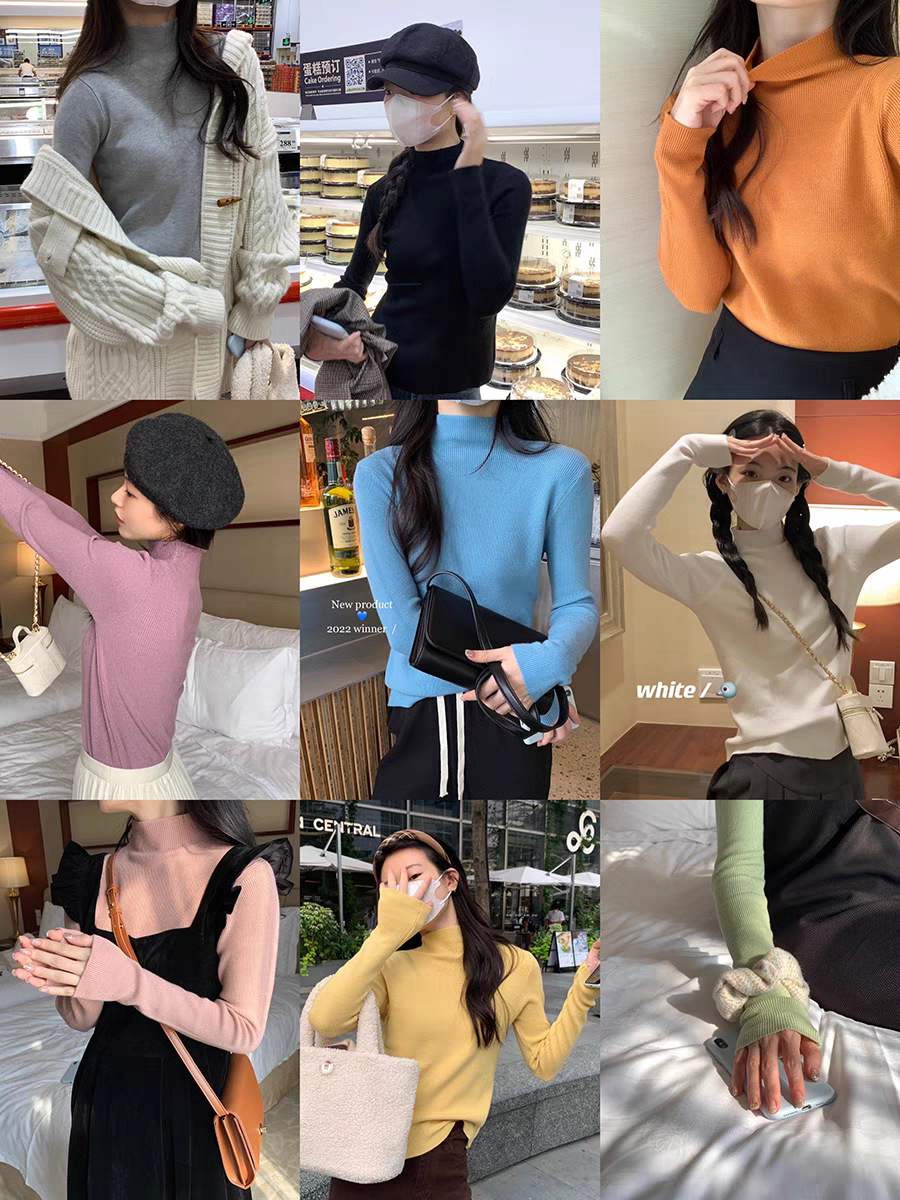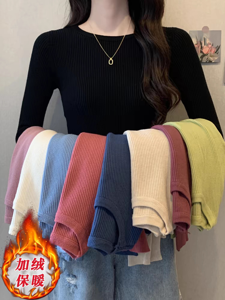 new spring and autumn women's clothing knitted bottoming shirt long sleeve pullover skinny inner match bottoming shirt sweater pure color all-matching long sleeve