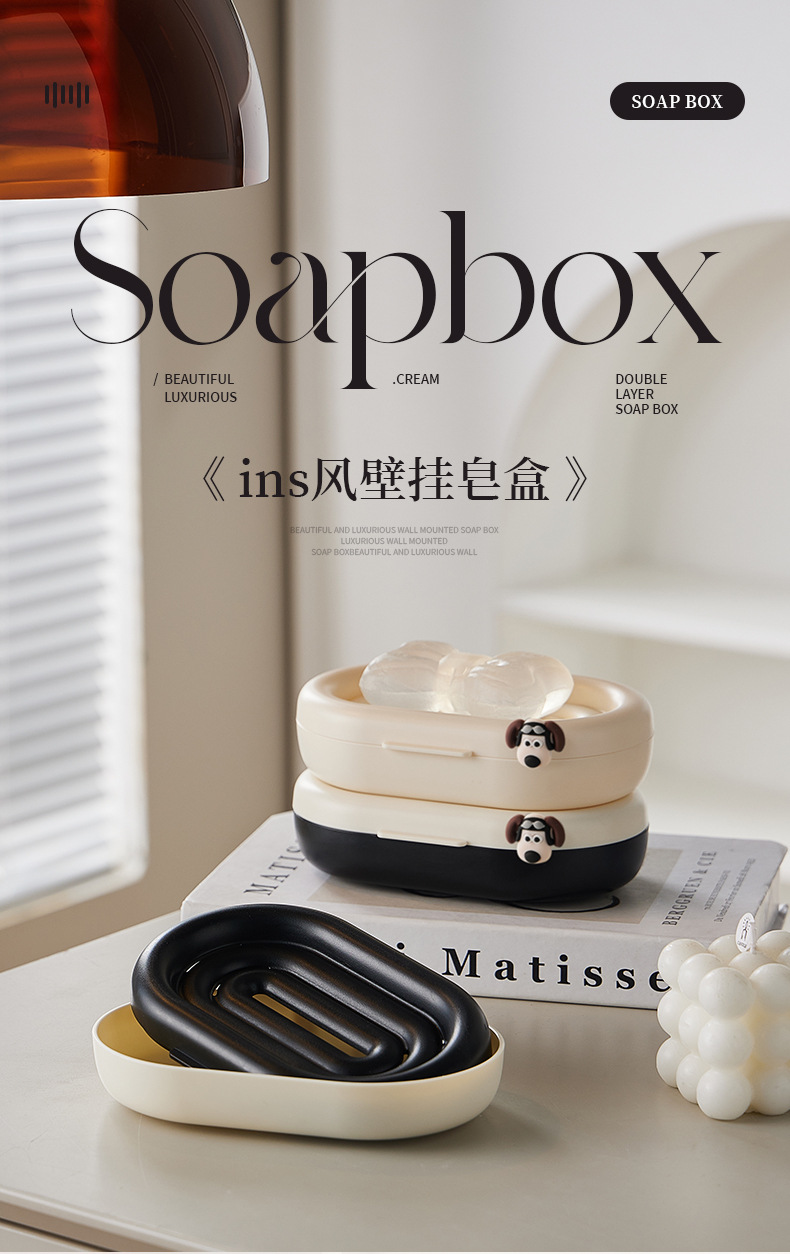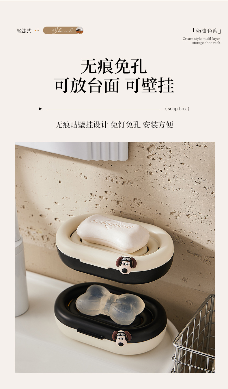 punch free soap box wall-mounted household double-layer drain soap box bathroom toilet cream style soap holder