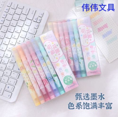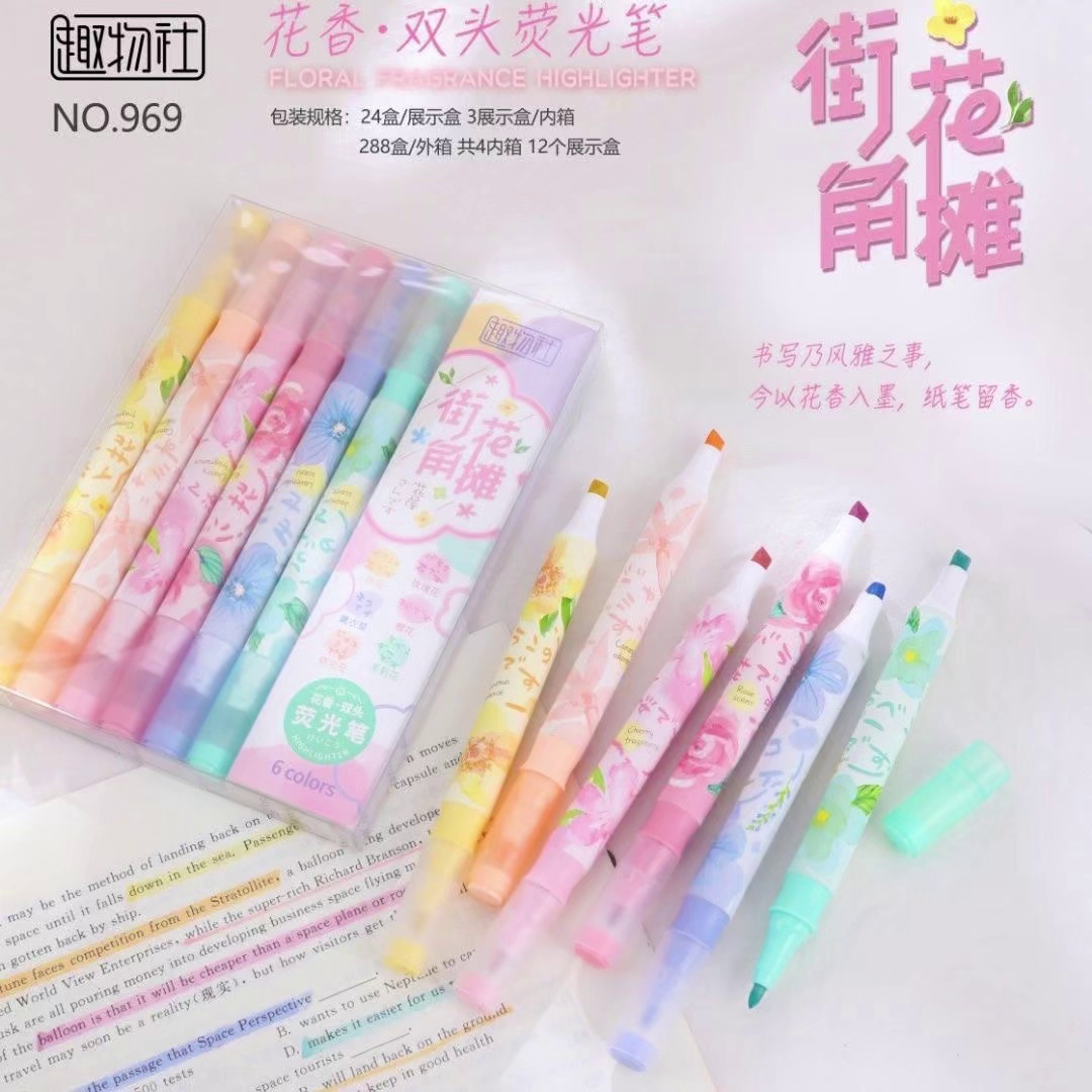 flower fragrance double-headed fluorescent pen fragrance journal pen fluorescent marking pen student color marking pen take notes and draw key points 中文版