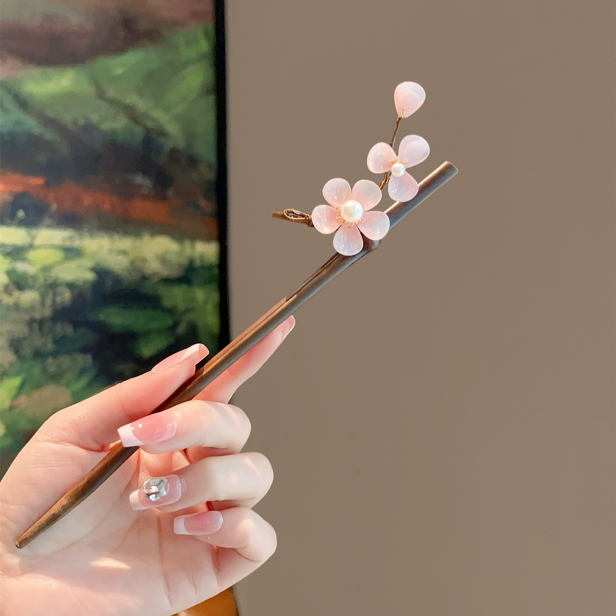 pink cherry blossom hairpin