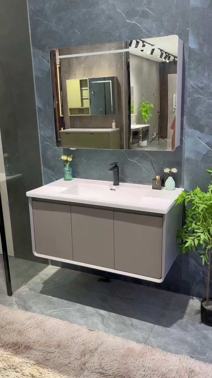 Under the light fish belly gray rock panel, there is a 3.0 seamless basin hanging down, with a width of 50 inches.