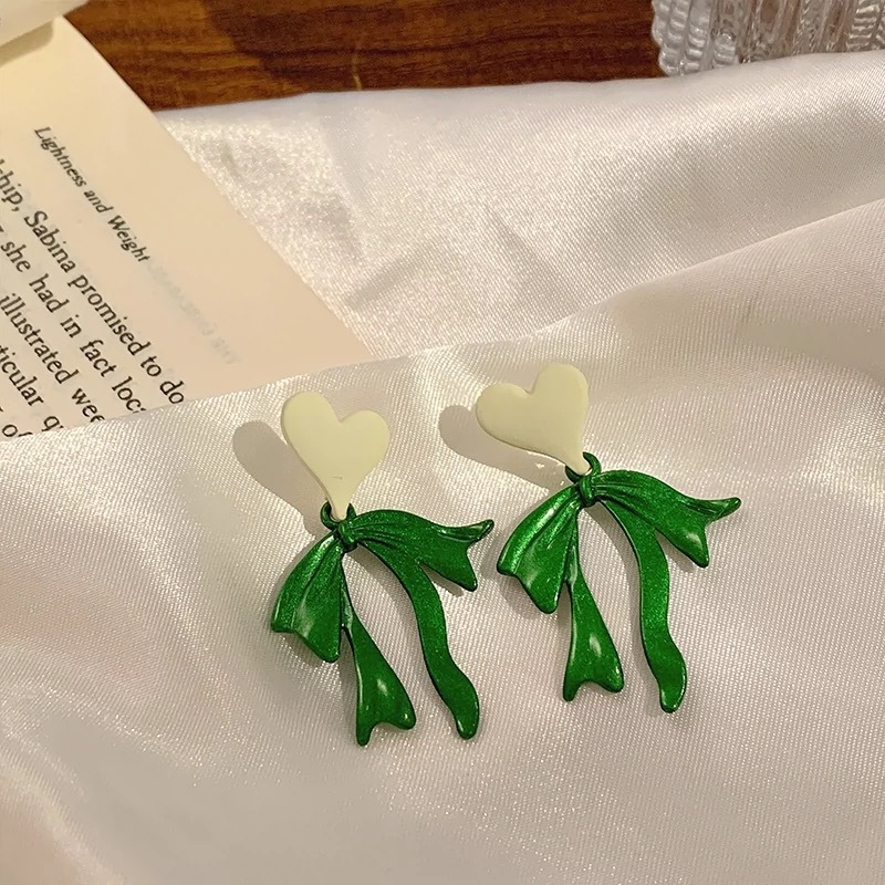5# retro green love heart bow tie
