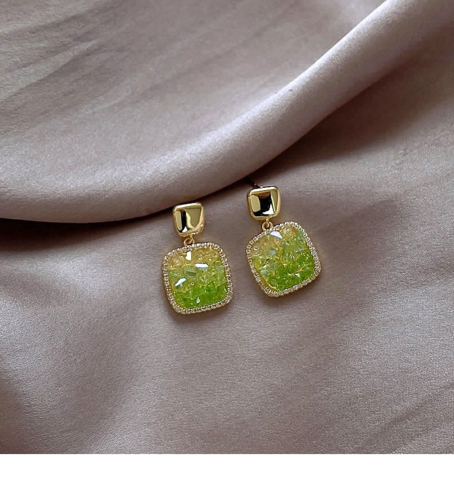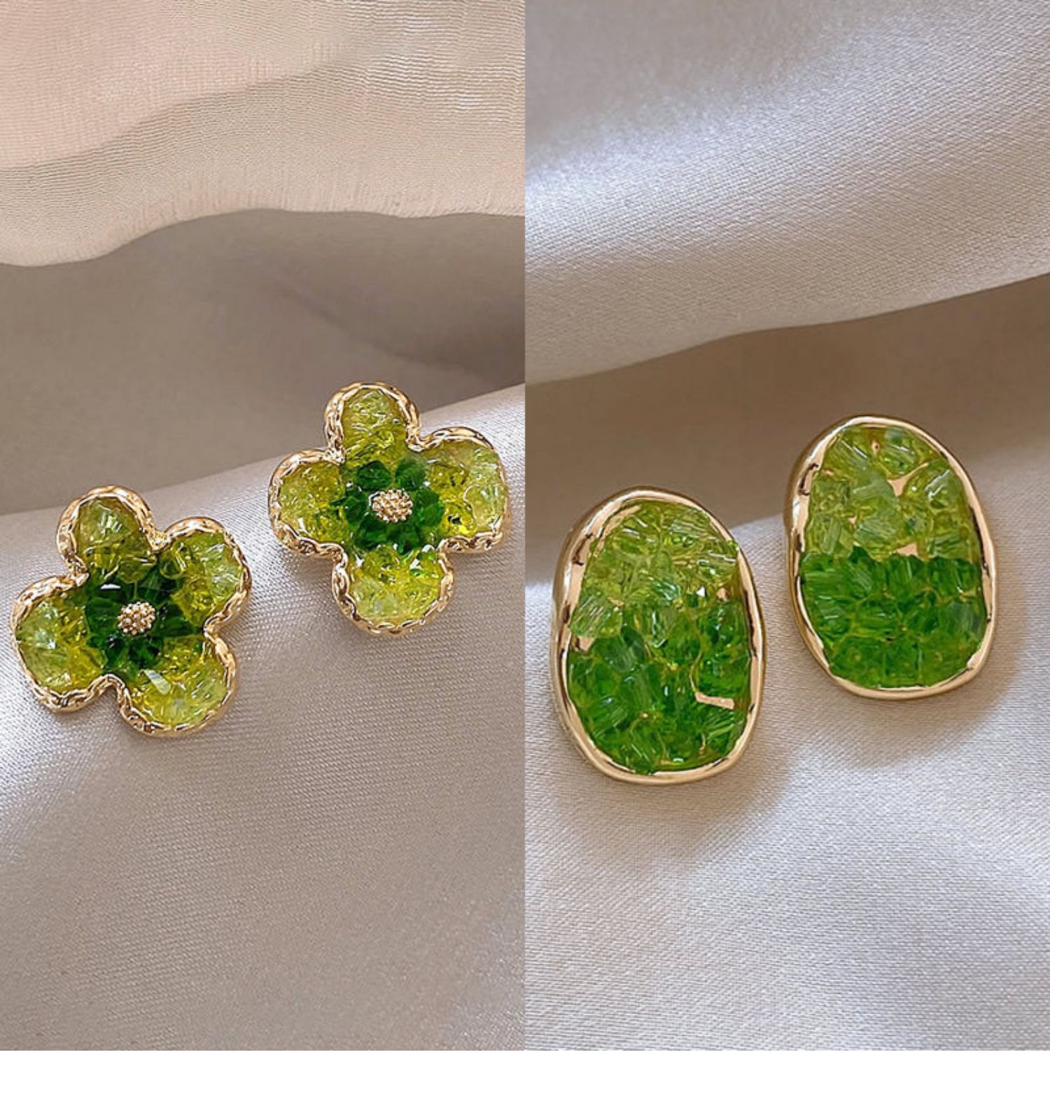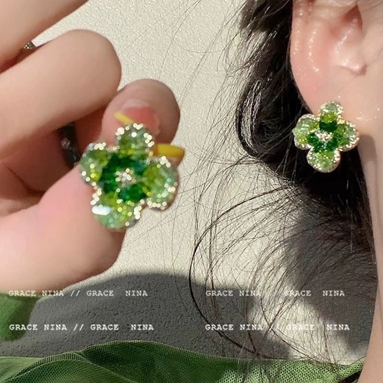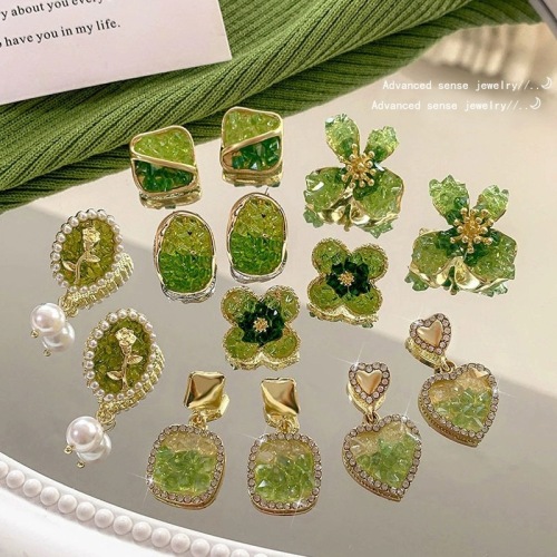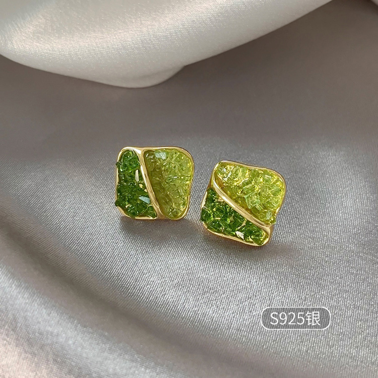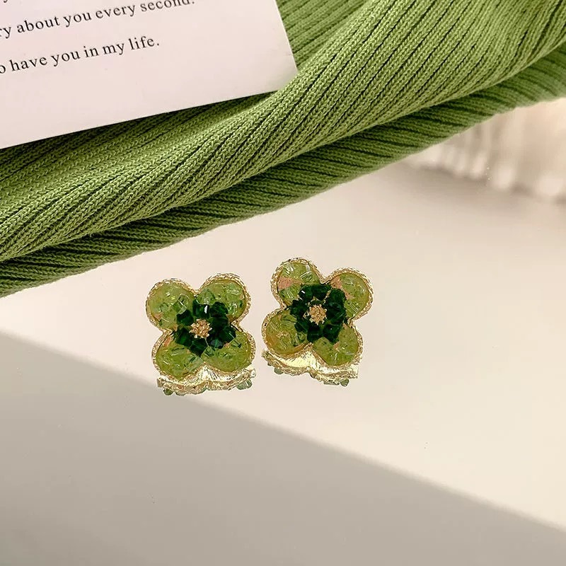 3# green crystal stone flower stud earrings