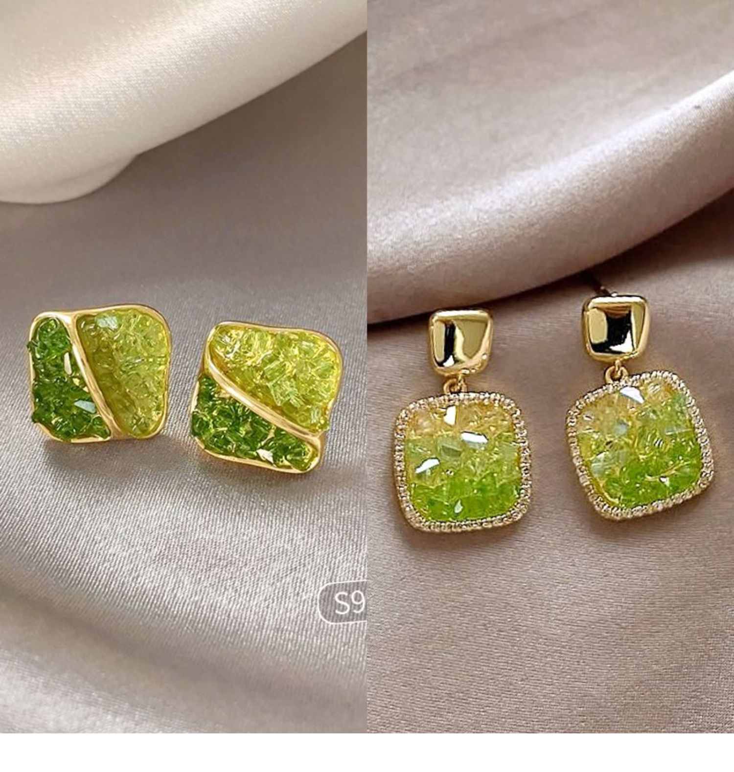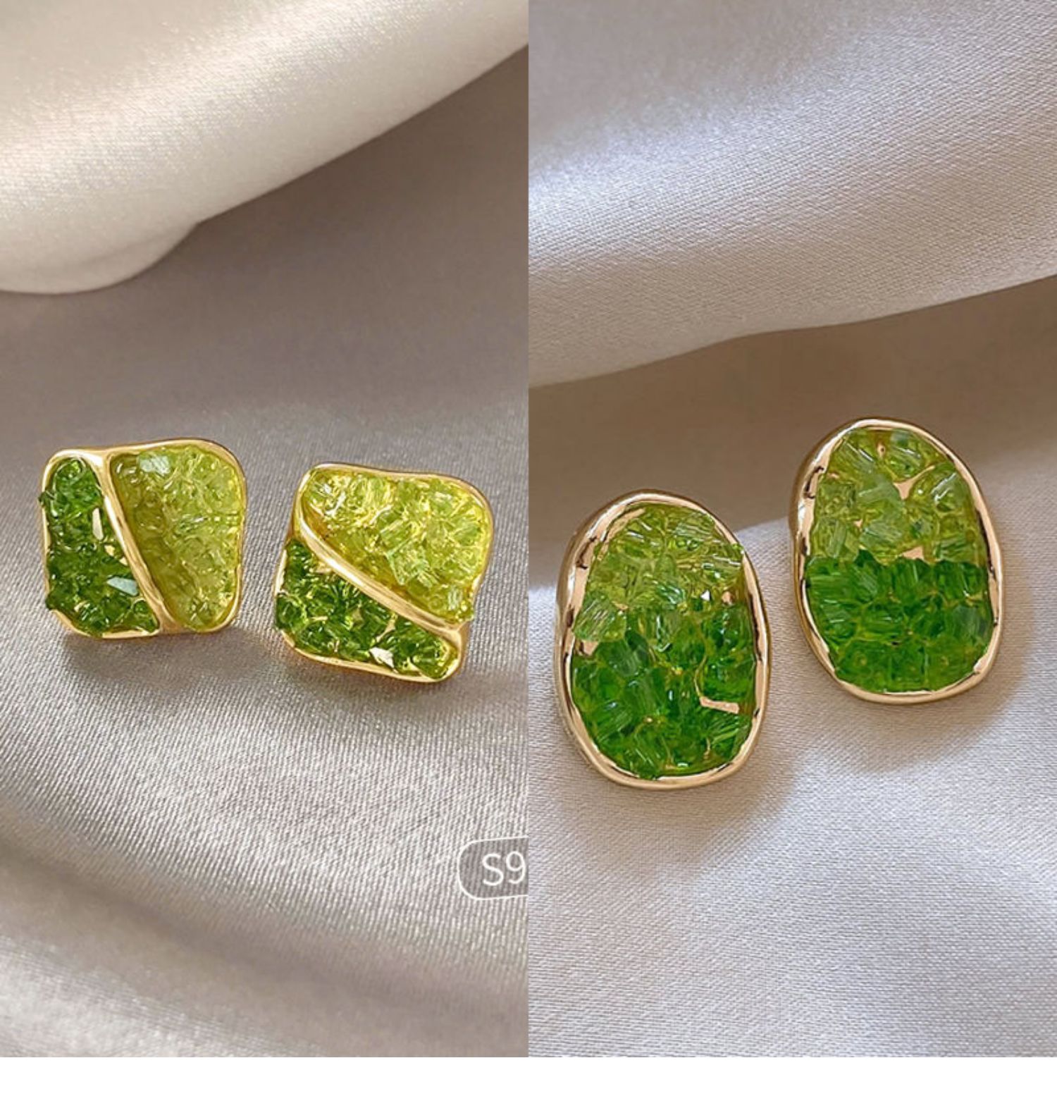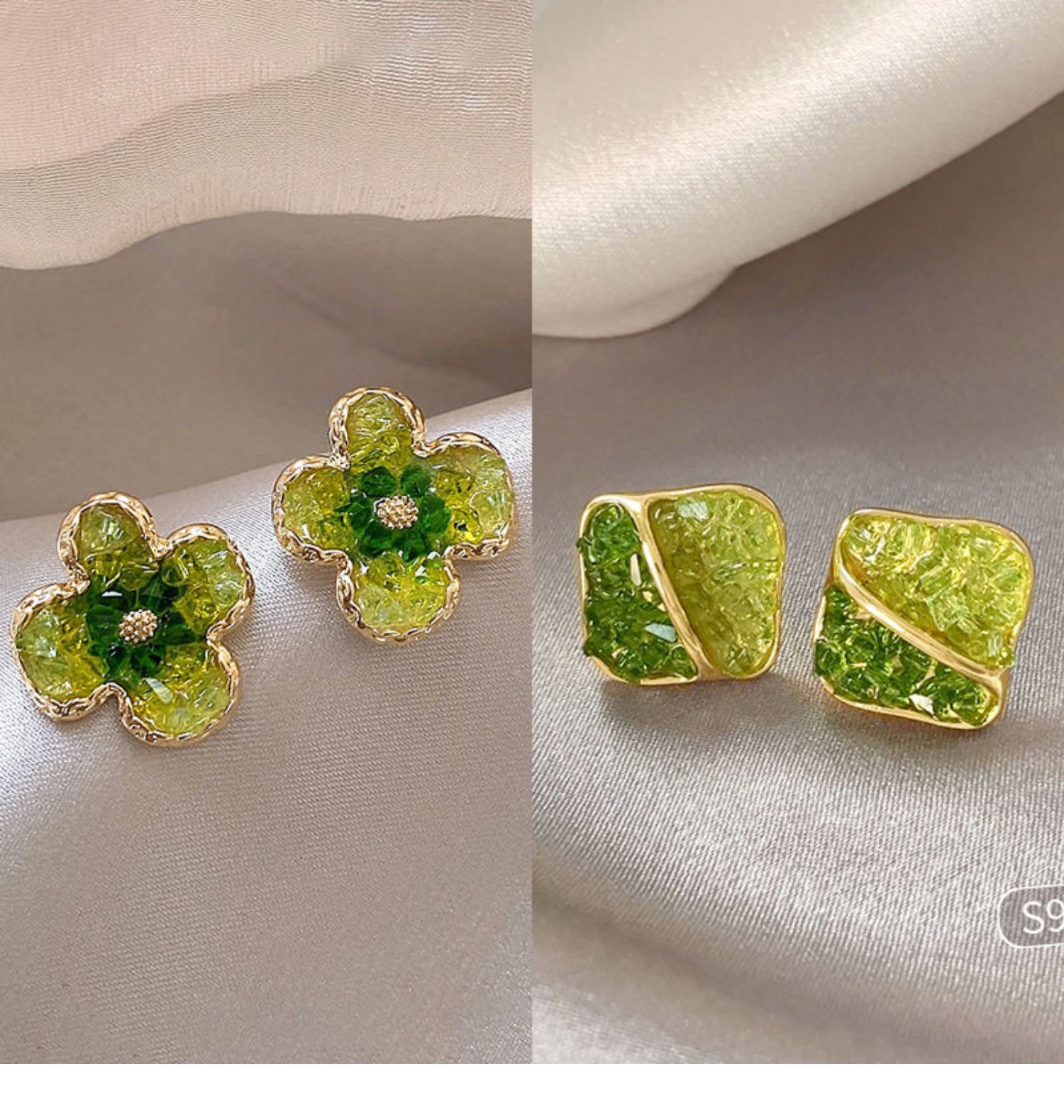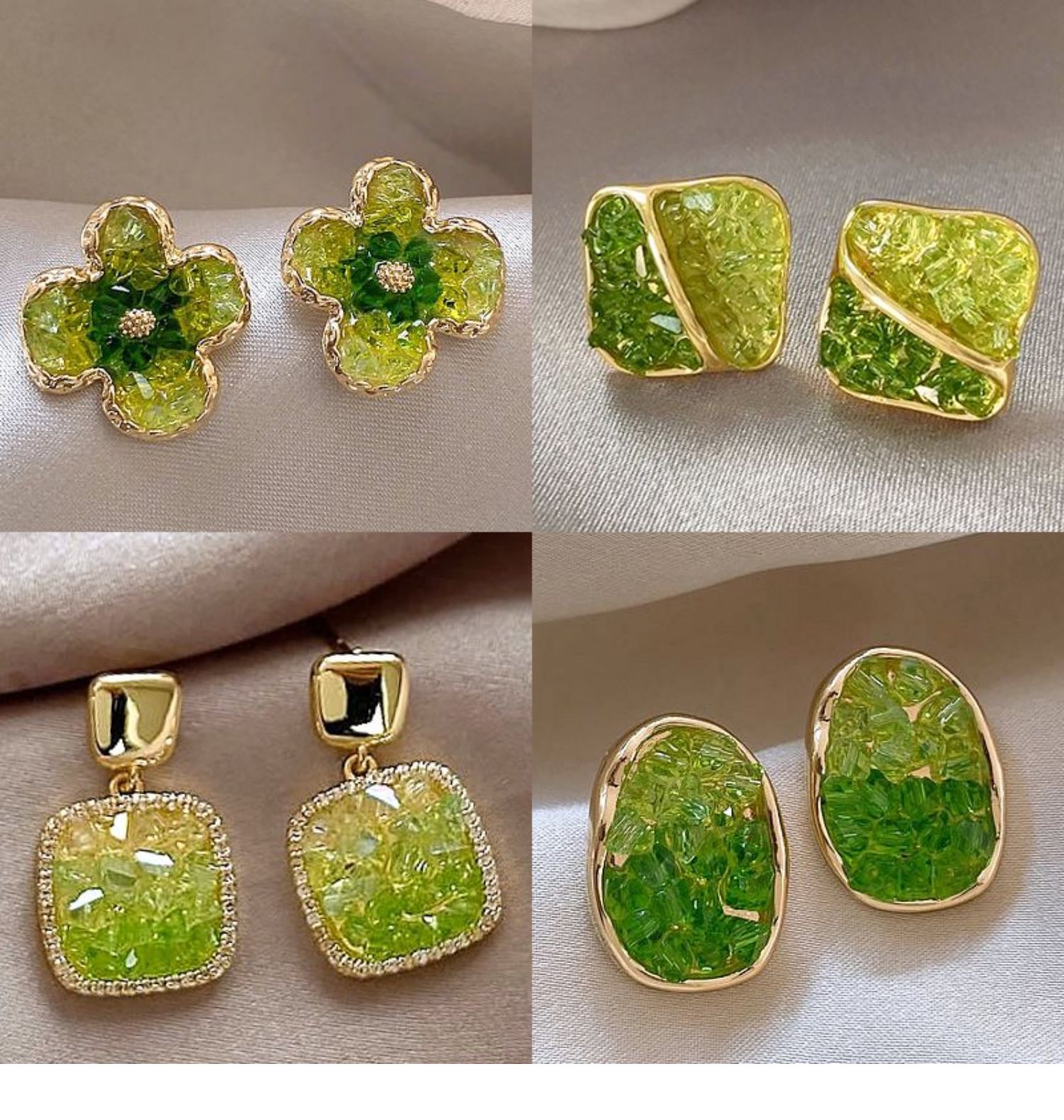 3# green crystal stone flower stud earrings