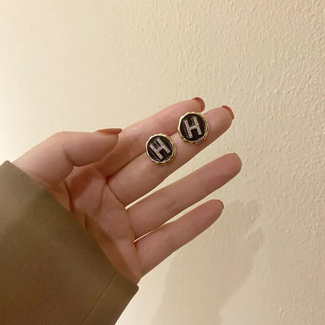 18# black round h stud earrings