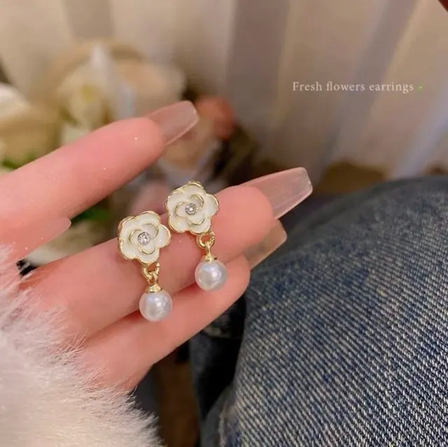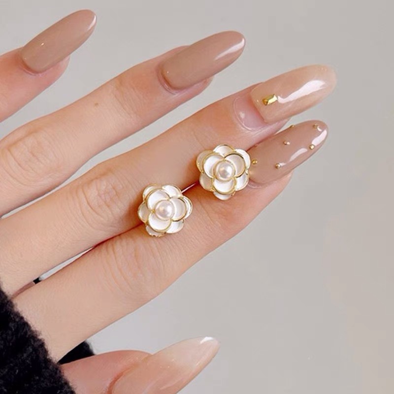 10# camellia pearl ear studs