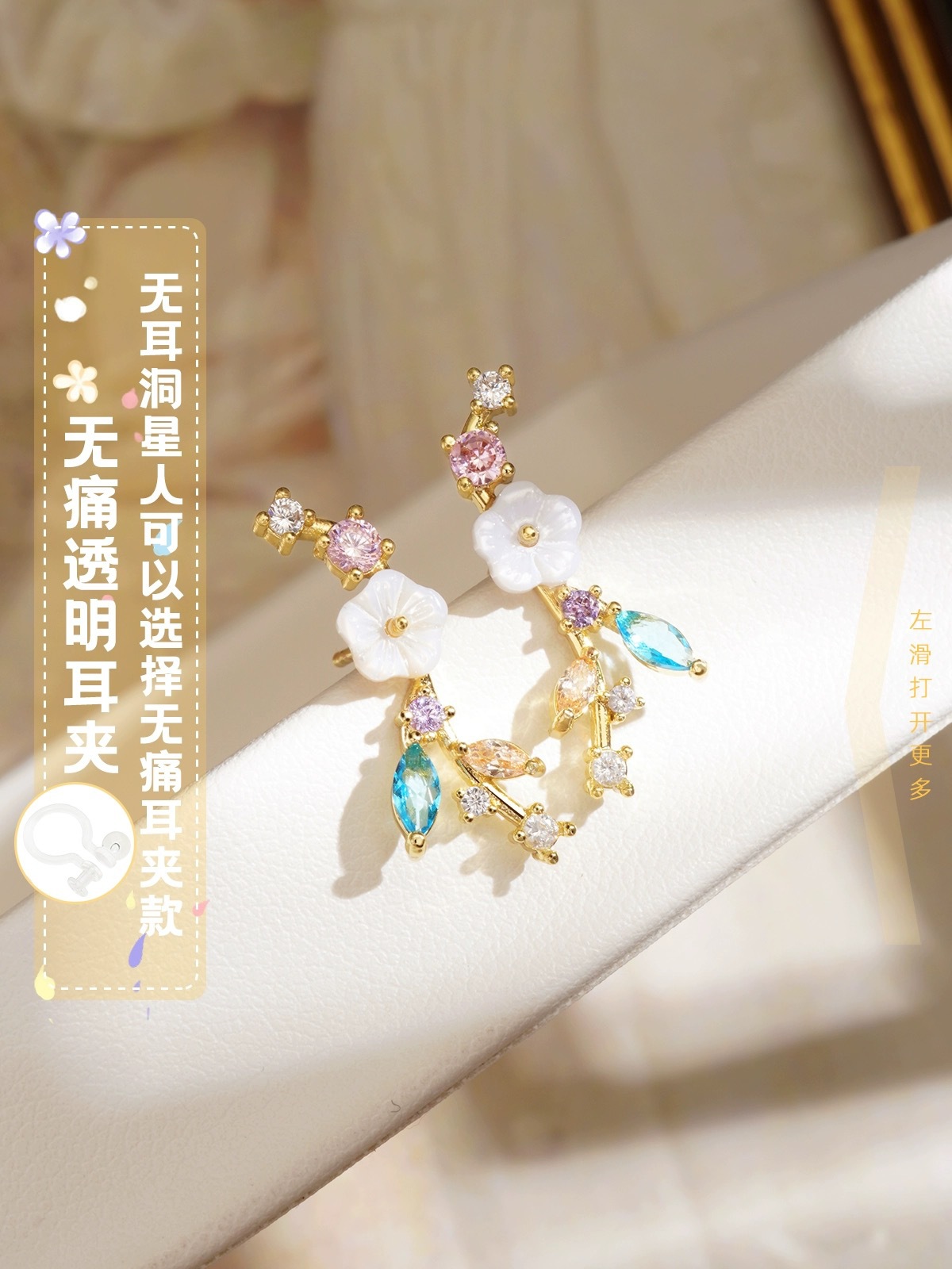22# gold color zirconium flower ear clip