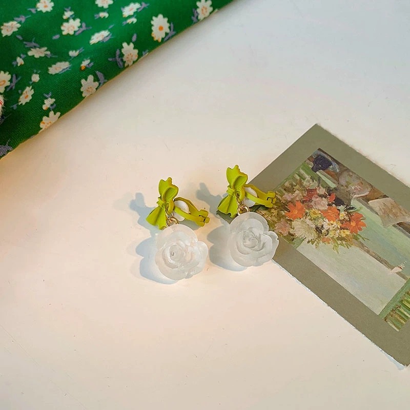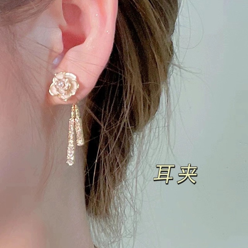 26# white camellia ear clip