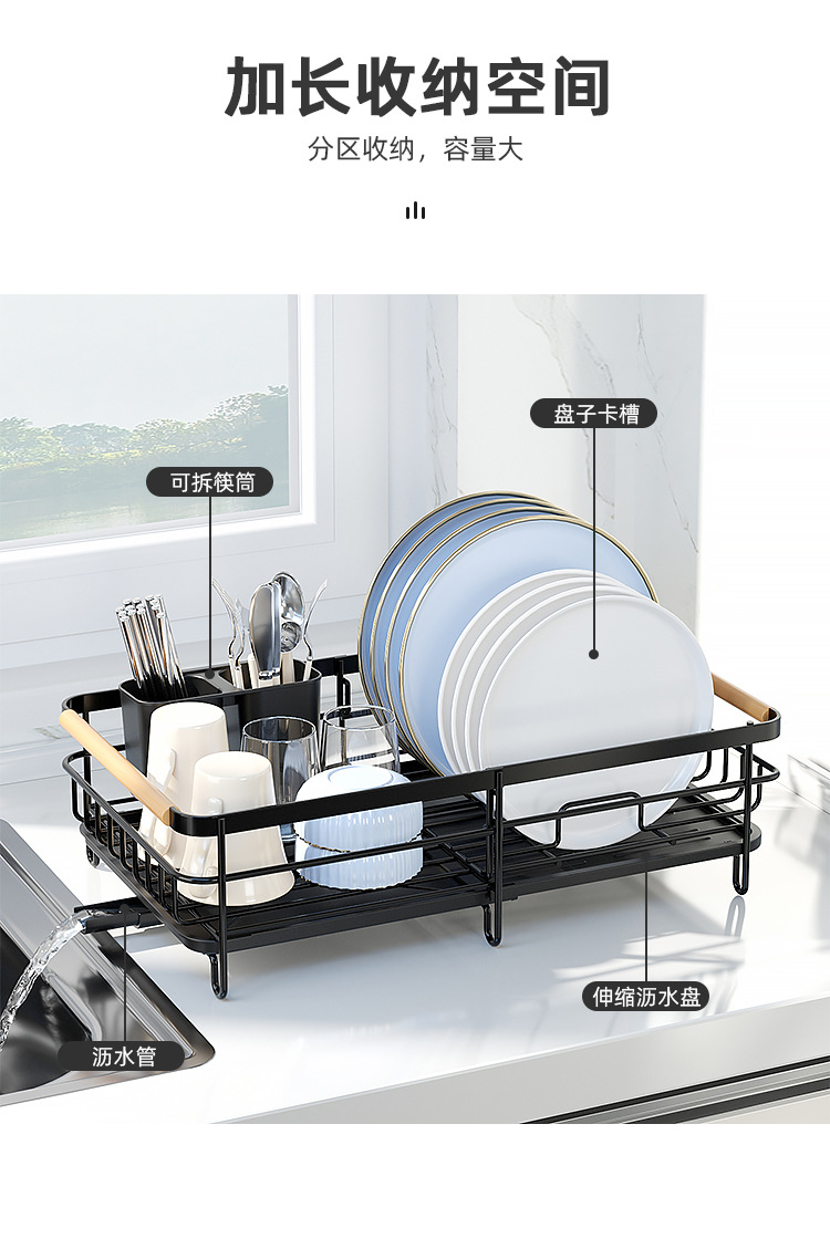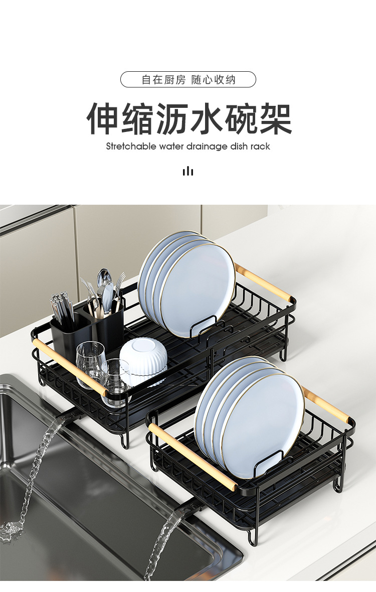 跨境新款伸缩沥水碗架台面多功能沥水杯具筷子餐具收纳架碗碟架 |