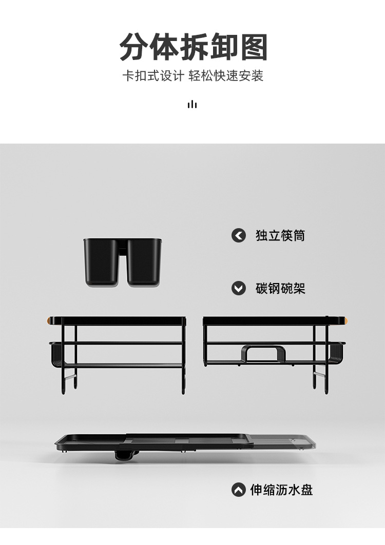贸点工厂直营MD- BT090伸缩沥水碗架台面多功能沥水杯具筷子架
