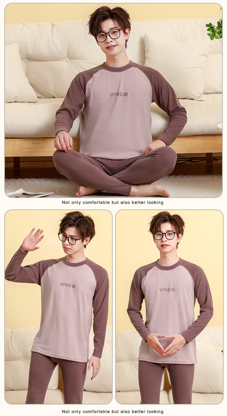 tiktok daifa teen autumn clothes long johns men's suit warm ginger velvet pajamas junior and middle school students thickened thermal underwear 中文版