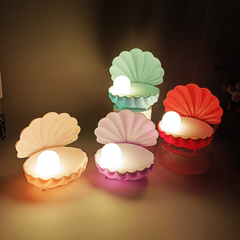 new fantasy shell small night lamp cream glue handmade diy luminous toy pearl shell children ambience light 中文版