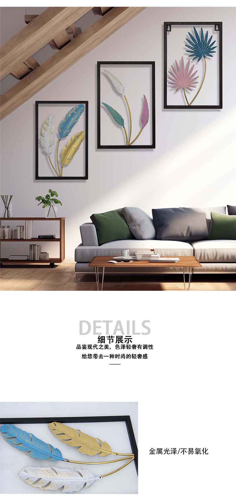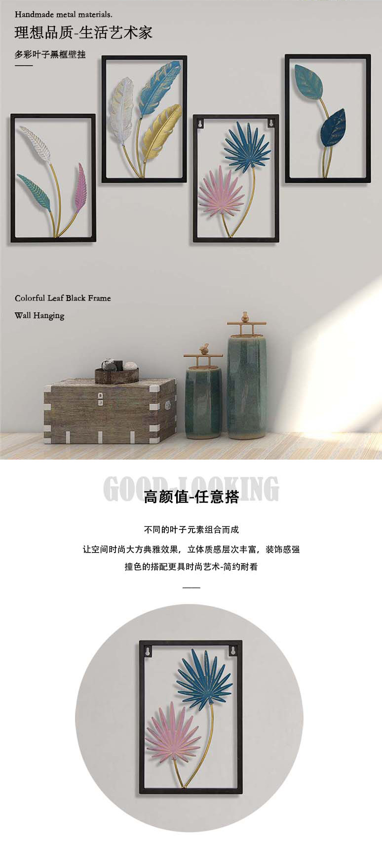 cross-border selected wrought iron decoration multi-color artistic leaf hollow wall hanging living room decorative painting for hallway wall wholesale 中文版