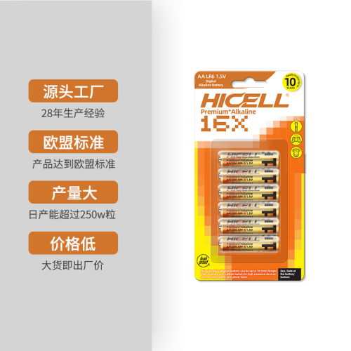 Hicell No. 5 Aalr6 Am-3 Alkaline Battery 6 Vertical Card Battery EU Standard Factory Direct Sales 中文版