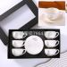 square round ceramic marble decals gold rim coffee set