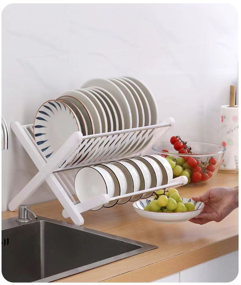 new folding bowl rack installation-free draining storage rack kitchen bowl rack double layer tableware stand household