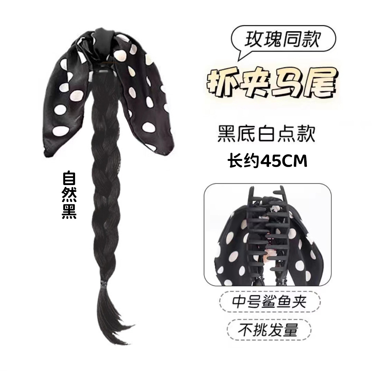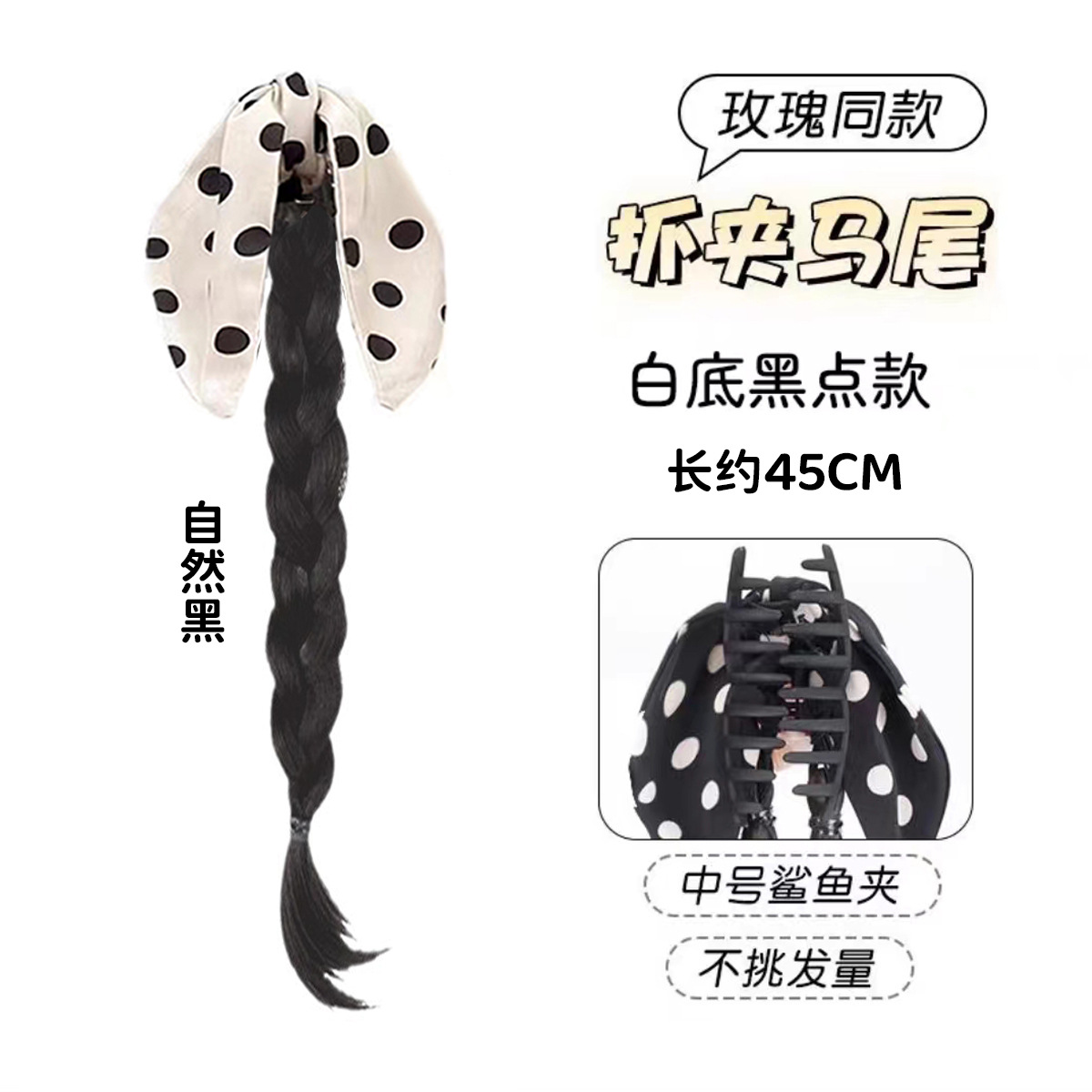 black polka dot bow single horse tail (black brown)