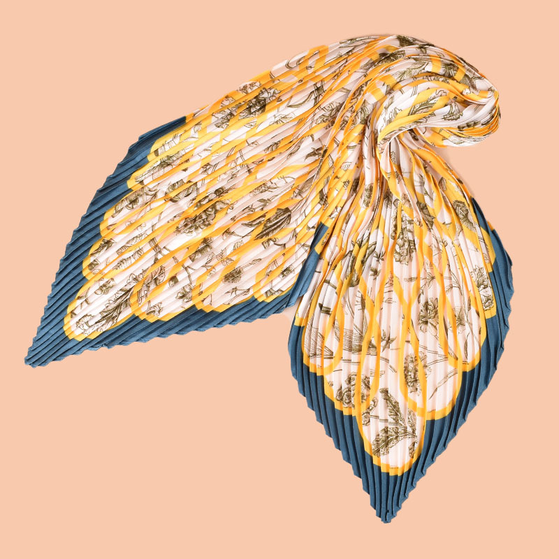 new fashion floral line pattern printing high-grade pleated women's thin 70 square scarf silk scarf