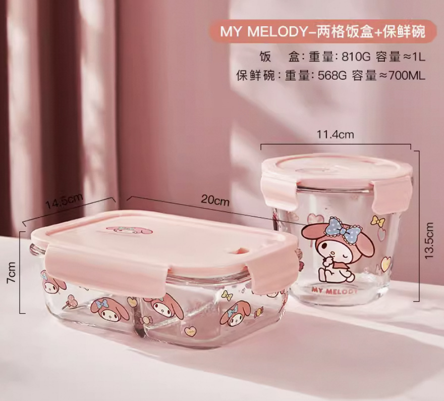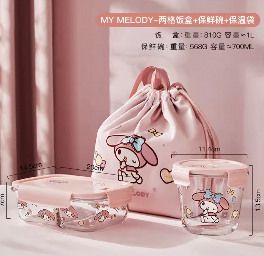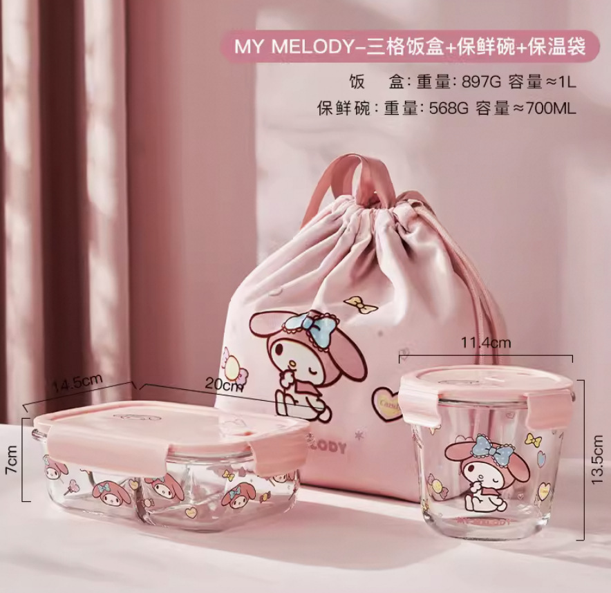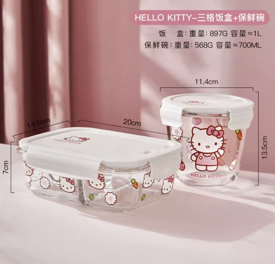 hello kitty-3-compartment + round soup bowl + freshness protection package