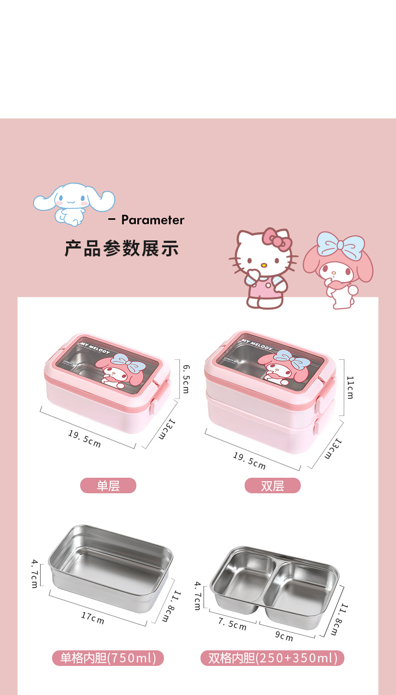 stainless steel single-layer lunch box-cinnamoroll