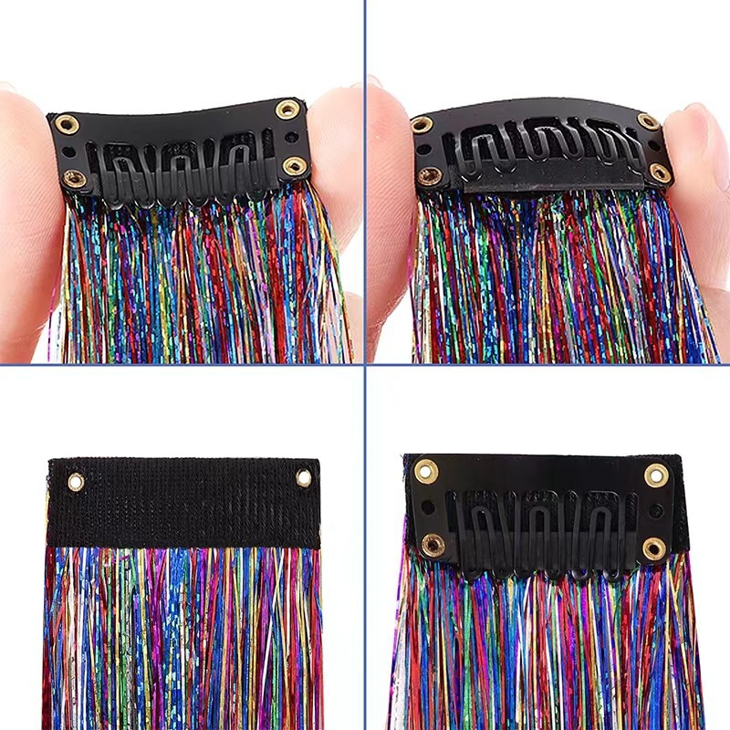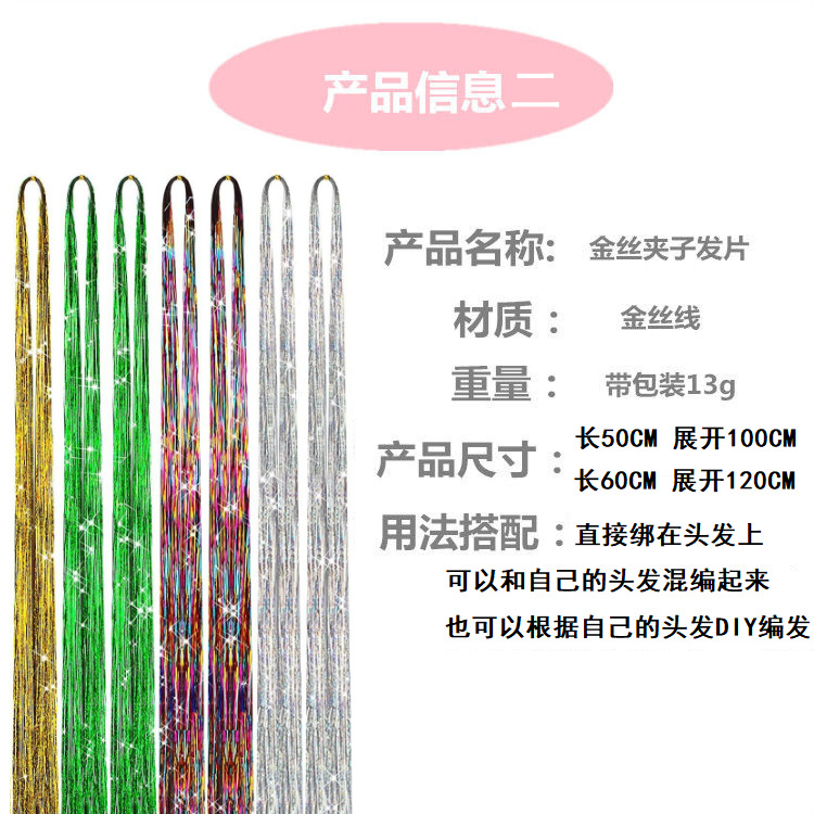 seamless color gold silk wig set hair extension gold silk laser color thread braided hair color wire bright silk color flash ribbon