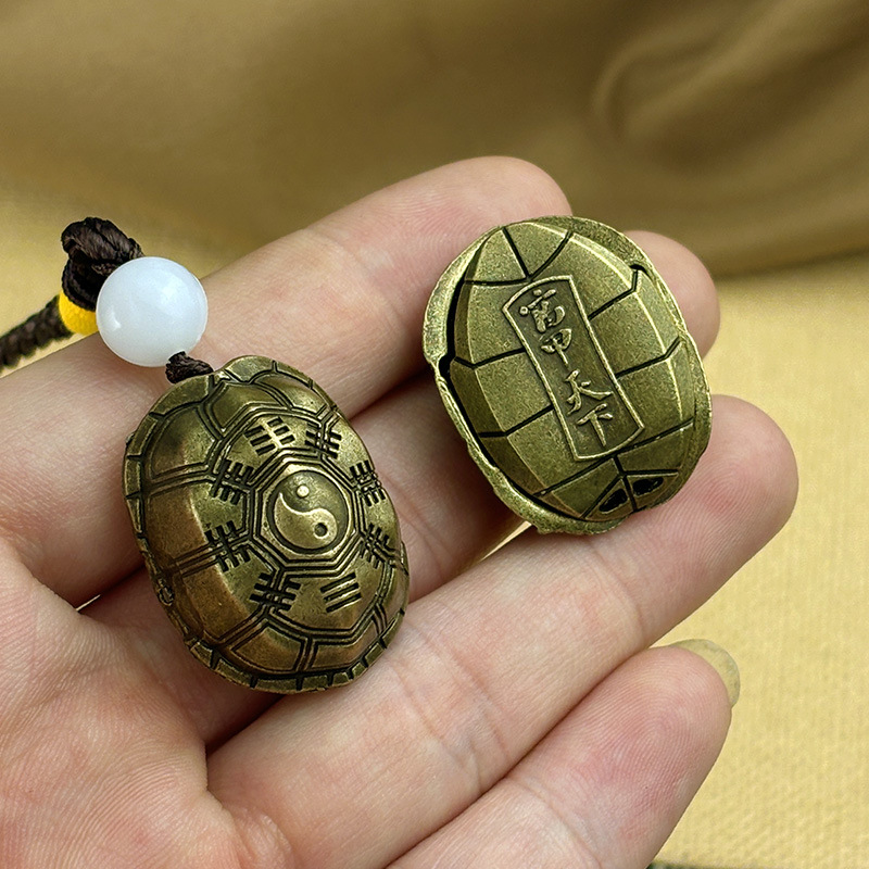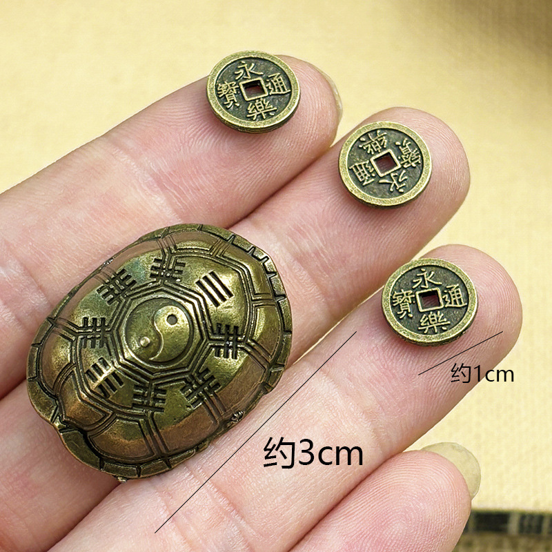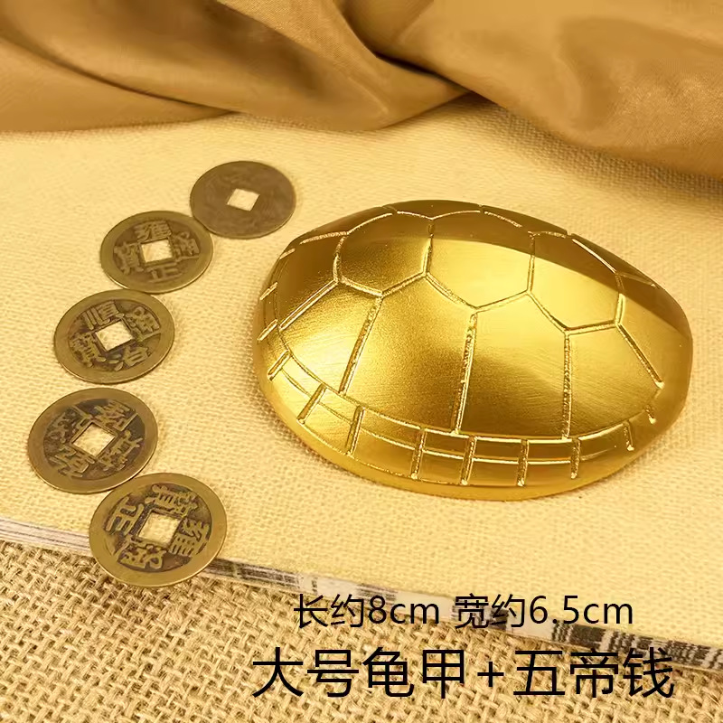 large brass tortoise shell + qing dynasty five emperors' coins