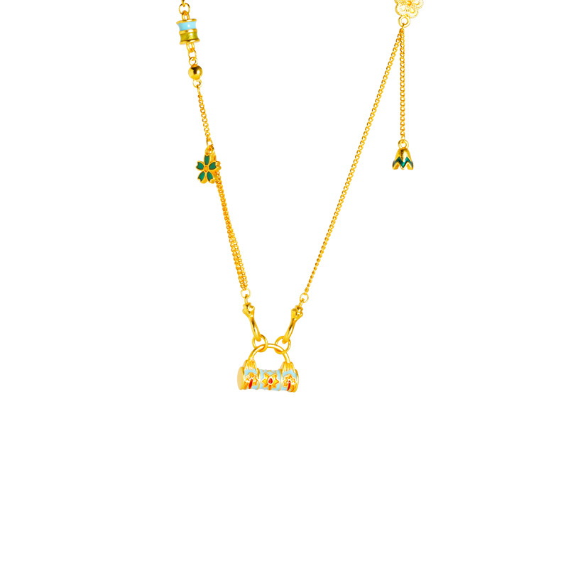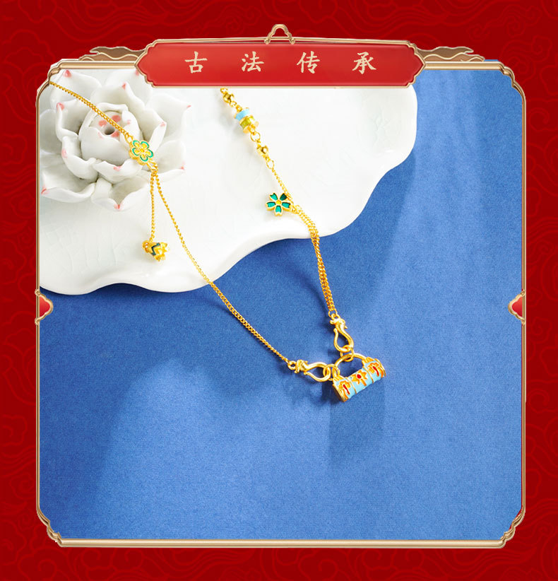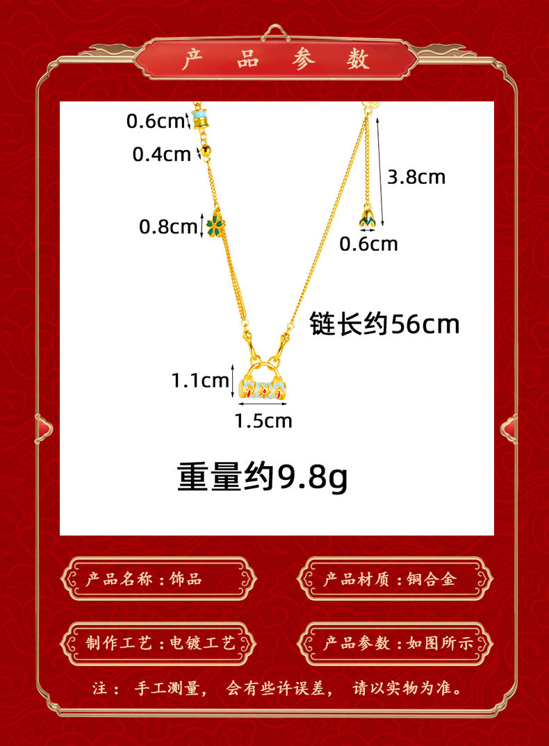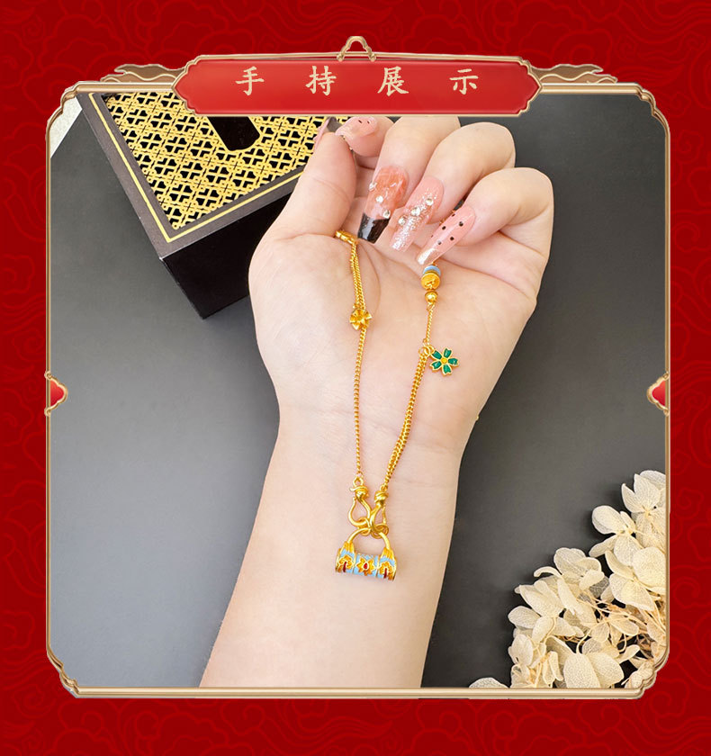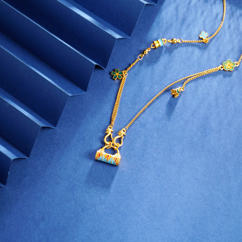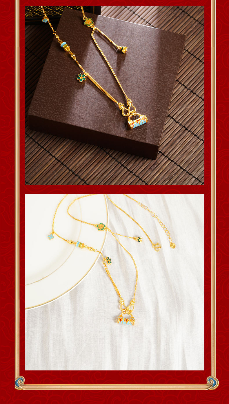 vietnam placer gold pattern lock necklace women's wild niche retro ethnic wind does not fade for a long time accessories jewellery accessories 中文版