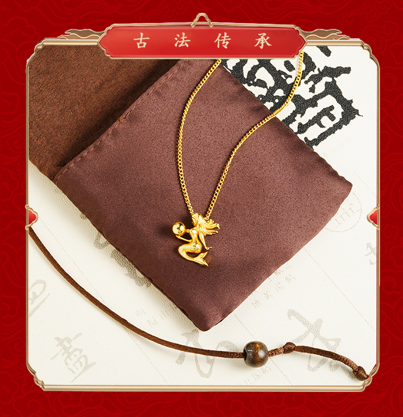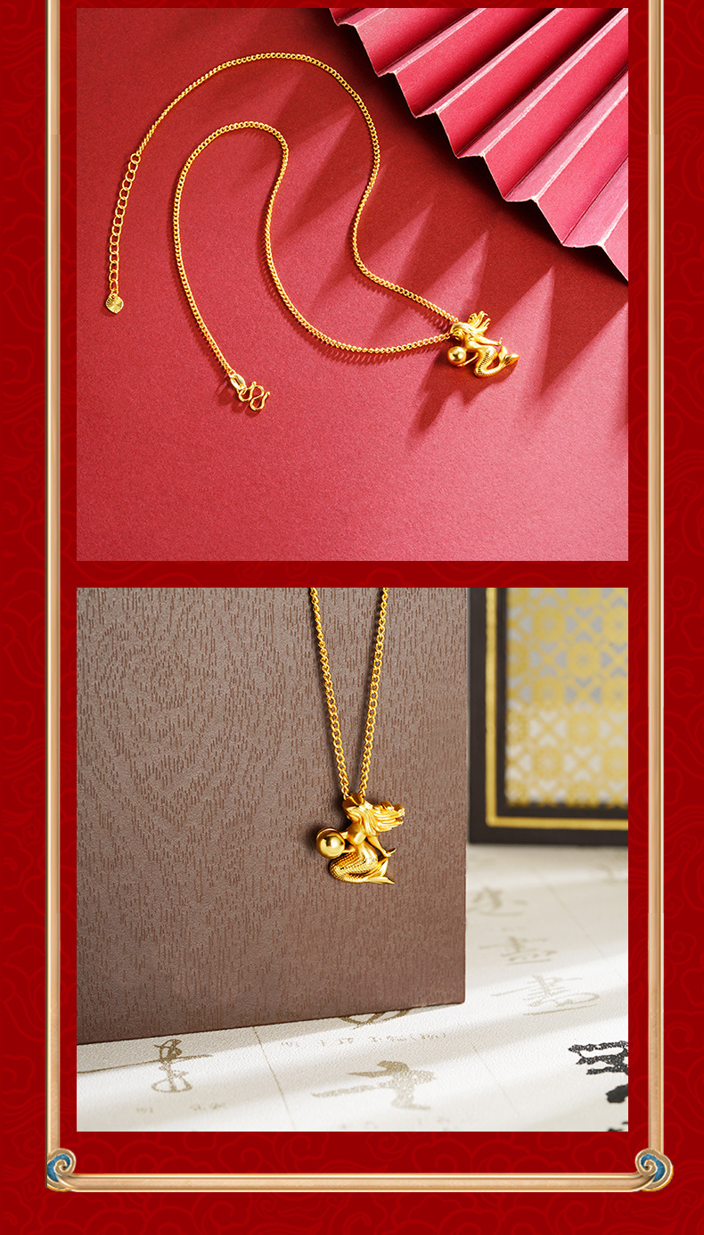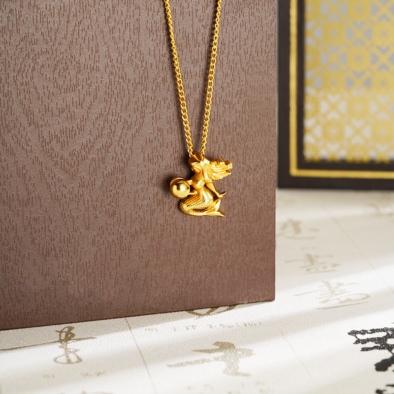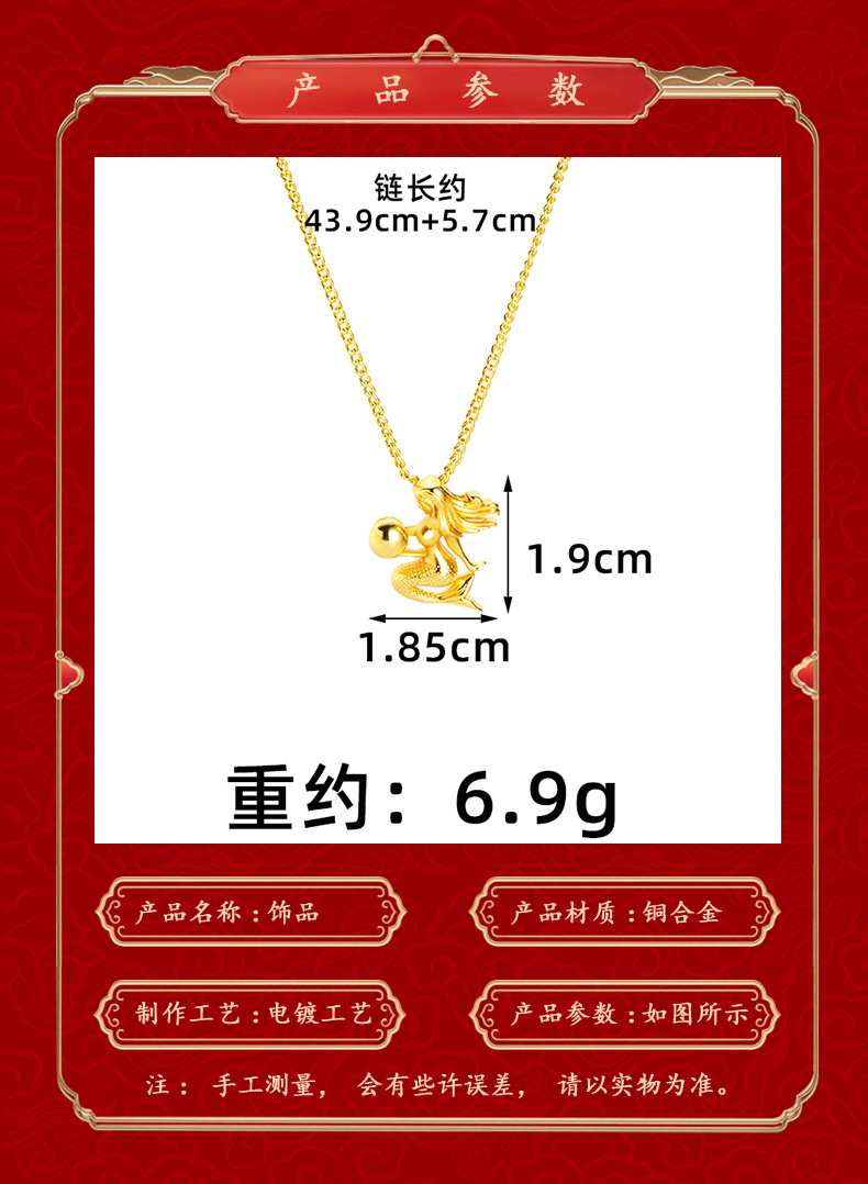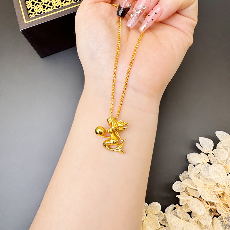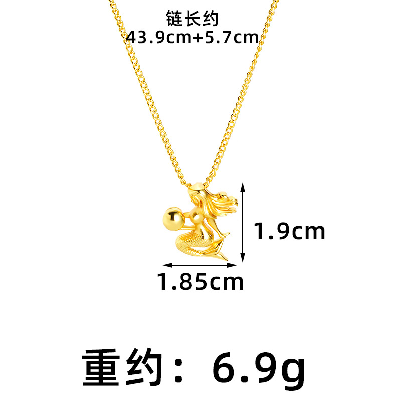 alluvial gold little mermaid necklace female fashionable temperamental all-match high-grade light luxury copper-plated gold jewelry no color fading 中文版